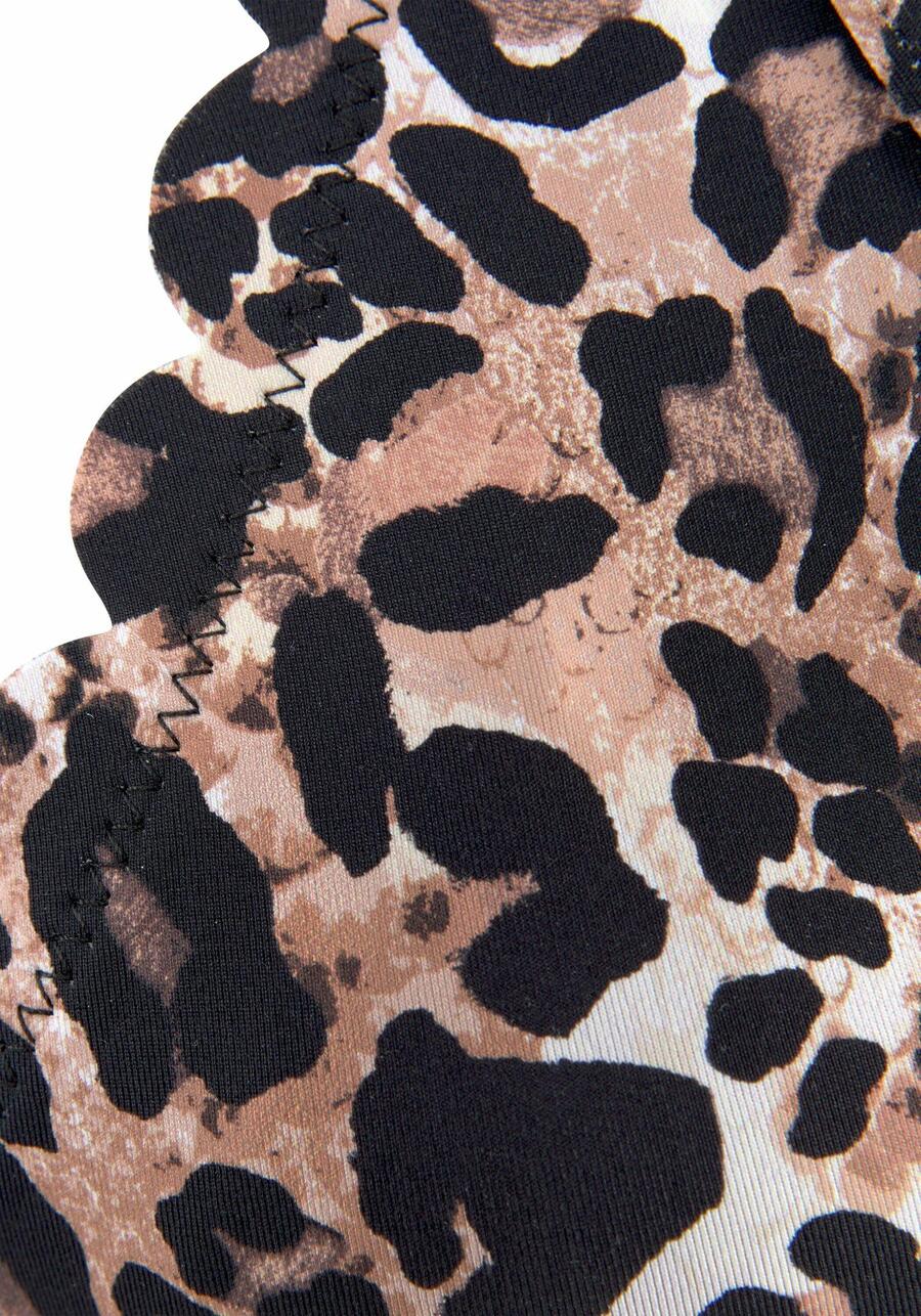 Топ на косточках от Lascana с модным анималистичным принтом и фестончатым краем. Чашечки съёмные. Завязывается на шее и застёгивается сзади. Мягкая микрофибра. Внешний материал: 84% полиамид, 16% эластан. Подкладка: 100% полиамид KAT-75.