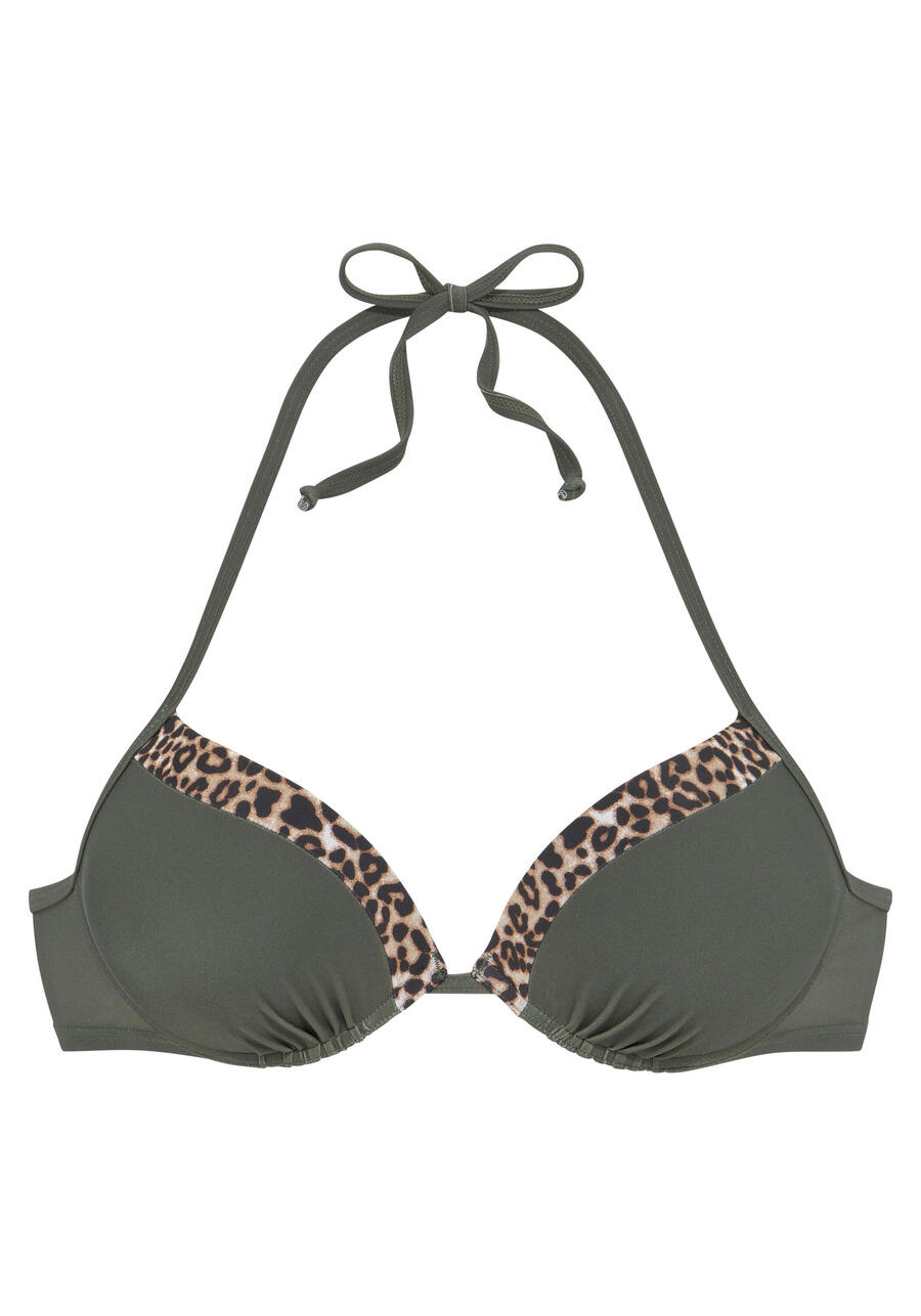 Топ пуш-ап от Lascana. С леопардовым принтом. Мягкие чашки с встроенным усилением. Завязывается на шее и застегивается сзади. Смешанная вязка. Комфортный материал с добавлением переработанного полиамида. LOV-170