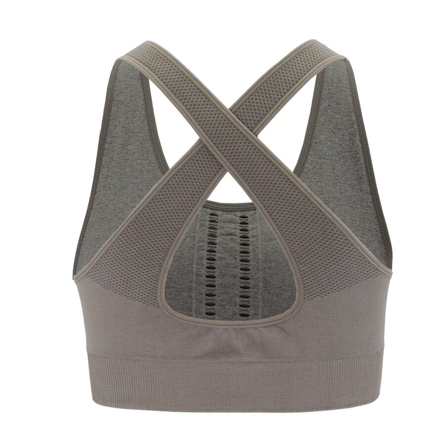 Бесшовный спортивный бюстгальтер из мягкого и функционального материала Compress Power. Со съёмными чашками, перекрёстными бретельками и светоотражающими элементами. Бюстгальтер двусторонний и поглощает запахи.