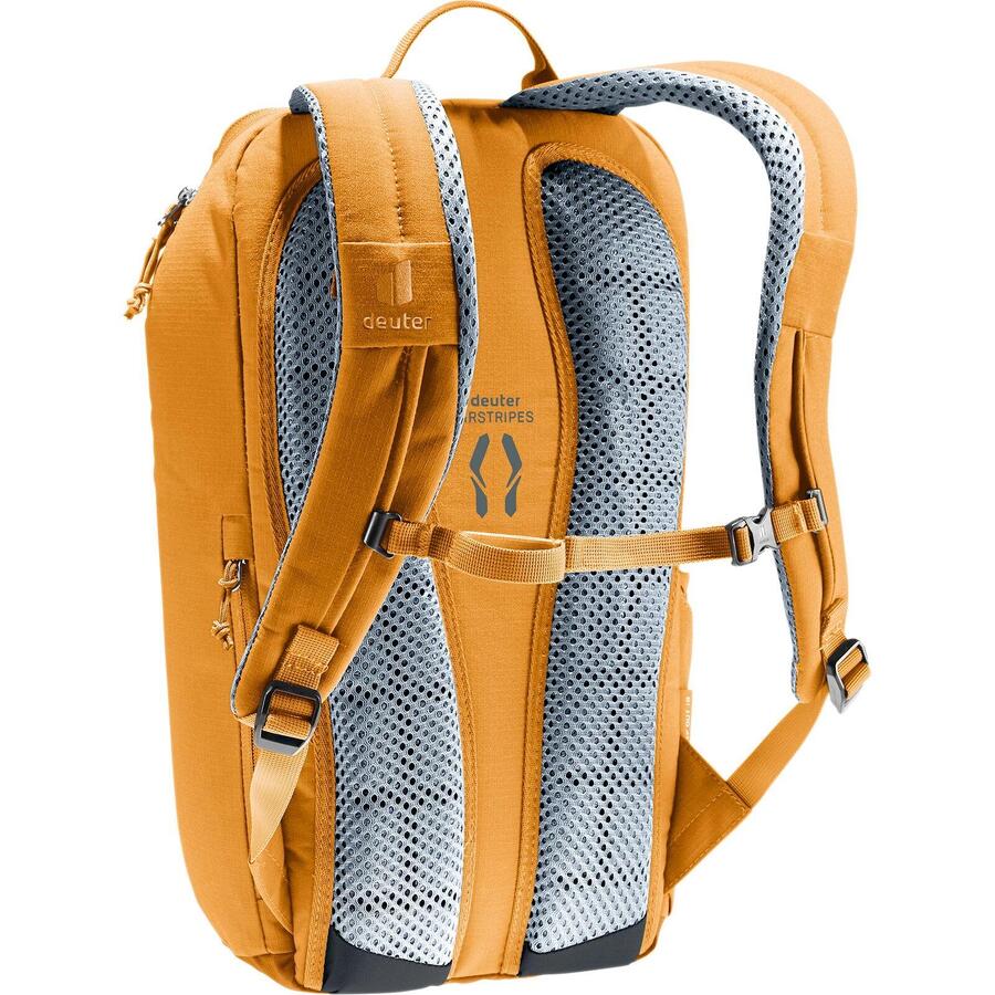StepOut 16 от Deuter объёмом 16 литров — это рюкзак среднего размера в линейке, удобный, хорошо вентилируемый и отлично организованный. Благодаря перфорированным эргономичным плечевым ремням и системе поддержки спины Airstripes, обеспечивающей поддержку поясницы, StepOut 16 отличается максимальной циркуляцией воздуха и высоким комфортом при ношении. Большая U-образная молния в верхней части рюкзака, боковое отделение для телефона на молнии и эластичный боковой карман обеспечивают быстрый доступ к содержимому и необходимым вещам. В просторном основном отделении есть отделение для документов, отделение для планшета и сетчатый карман на молнии с карабином для ключей, что обеспечивает удобную организацию и достаточно места для всего необходимого по дороге на работу, в школу, университет или просто на прогулку. Материал рюкзака – переработанный полиэстер, сертифицированный Bluesign, прочный, долговечный и водо- и грязеотталкивающий. Для обеспечения водо- и грязеотталкивающих свойств рюкзака Deuter использует нетоксичное и экологически чистое покрытие DWR (Durable Water Repelency), не содержащее перфторуглеродов (PFC). Эта специальная обработка поверхности заставляет воду скатываться с внешней поверхности ткани, образуя капли. Это сохраняет материал сухим, а окружающую среду – чистой.