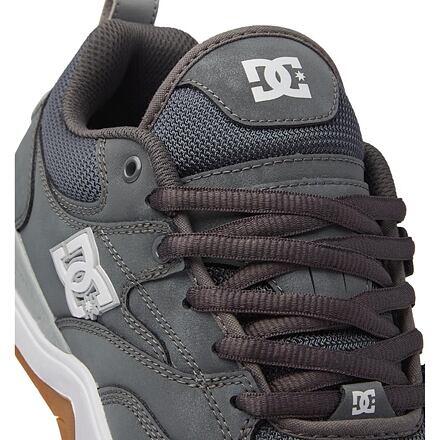 Модель adys100844 бренда DC, серого цвета, изготовлены из текстиля. Материал верха: кожа. Конструкция: слип-он. Сделано во Вьетнаме.