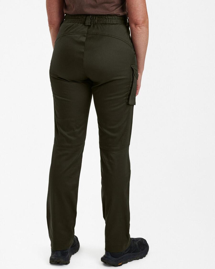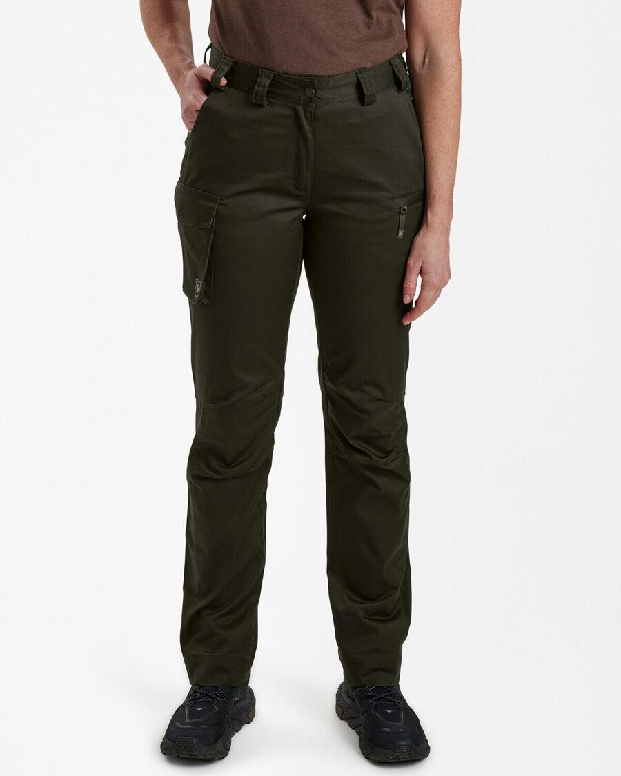 Женские брюки DEERHUNTER Traveler сочетают в себе функциональность и комфорт для страстных охотников и любителей активного отдыха. Изготовленные из легкой хлопковой смеси, эти брюки идеально подходят для теплой погоды. Удобный материал, тянущийся в двух направлениях, обеспечивает максимальную свободу движений, а водоотталкивающая отделка без фторуглеродов защищает от легкого дождя. Брюки оснащены двумя практичными боковыми карманами, карманом на молнии на штанине с левой стороны и просторным карманом с клапаном на штанине с правой стороны. Встроенный карман для ножа гарантирует, что ваши самые важные инструменты всегда будут под рукой. Благодаря артикулированным коленям и частично эластичному поясу эти брюки обеспечивают оптимальный комфорт и женственную посадку. Двойной подгиб позволяет регулировать длину штанины, что позволяет персонализировать брюки. Женские брюки Traveler — идеальный спутник для вашего следующего приключения на природе. Внешний материал: 60% хлопок, 37% полиэстер, 3% эластан.