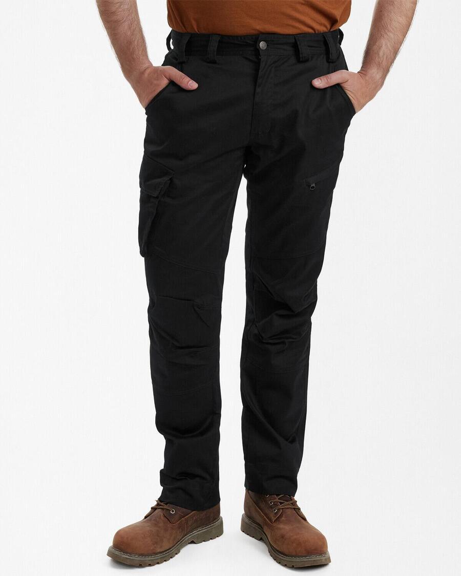Мужские брюки DEERHUNTER Traveler сочетают в себе функциональность и комфорт для страстного охотника и любителя активного отдыха. Изготовленные из легкой хлопковой смеси, эти брюки идеально подходят для теплой погоды. Удобный двусторонний эластичный материал обеспечивает максимальную свободу движений, а водоотталкивающая отделка без фторуглеродов защищает от легкого дождя. Брюки оснащены двумя практичными боковыми карманами, карманом на молнии на штанине с левой стороны и вместительным карманом с клапаном на штанине с правой стороны. Встроенный карман для ножа гарантирует, что ваш самый важный инструмент всегда будет под рукой. Благодаря артикулированным коленям и частично эластичному поясу брюки обеспечивают оптимальный комфорт. Двойной подгиб позволяет регулировать длину штанины, что позволяет персонализировать брюки. Мужские брюки Traveler станут идеальным спутником в вашем следующем приключении на природе. Внешний материал: 60% хлопок, 37% полиэстер, 3% эластан.