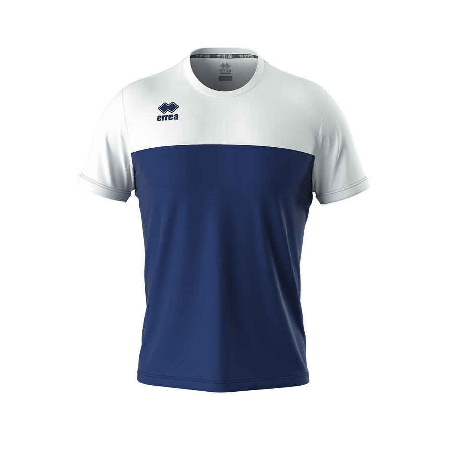 СИНИЙ-БЕЛЫЙ * Состав: 100% полиэстер (кожаная ткань плотностью 125 г/м²) * Цвет: двухцветный с контрастным кроем * Рукава: короткие * Вырез горловины: круглый * Посадка: полуприлегающая * Детали: втачные рукава с подгибом, внутренняя эластичная лента, крой и пошив трикотажа, широкие возможности персонализации в 23 цветовых сочетаниях * Экологичность: сертифицировано по стандарту Oeko-Tex Standard 100 * Применение: идеально подходит для командных видов спорта, таких как футбол, волейбол, мини-футбол и падел. Эта легкая и дышащая майка обеспечивает максимальную свободу движений и быстрое высыхание даже во время самых интенсивных соревнований.