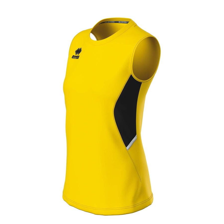 Цвет: ЖЕЛТЫЙ ЧЕРНЫЙ БЕЛЫЙ Состав: 100% полиэстер (ткань Mundial, 145 г/м²) Рукава: Без рукавов Вырез: Круглый Покрой: Слегка приталенный Детали: Круглый вырез с эластичной внутренней лентой, вставки из искусственной ткани и косая бейка, подгибка по низу рубашки Экологичность: Сертификация Oeko-Tex Standard 100 Применение: Идеально подходит для соревнований и тренировок по таким видам спорта, как волейбол, теннис, падел и гандбол. Идеально подходит для спортивной женщины, которая ищет легкость, свободу движений и стиль в одной рубашке.