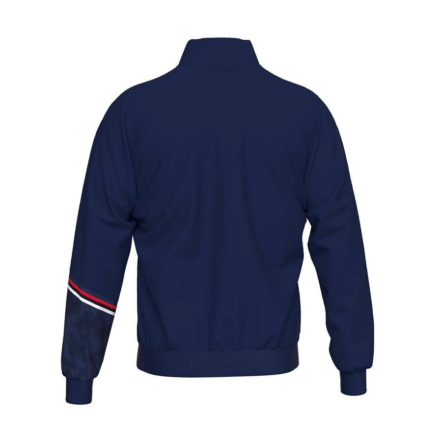 BLUE ROS WHITE * Состав: 100% полиэстер * Рукава: Длинные рукава * Вырез: Высокий ворот * Посадка: Стандартная * Застежка: Полная молния * Детали: Эластичные ребристые манжеты и пояс, боковые карманы на молнии, вставки для переноса, нагрудные и рукавные манжеты, начес на внутренней стороне для теплоизоляции * Устойчивость: Сертификация Oeko-Tex Standard 100 * Применение: Идеально подходит для холодного времени года, отлично подходит для представительских целей или отдыха благодаря тепловому комфорту и спортивному дизайну