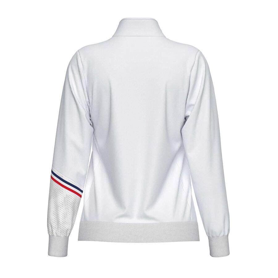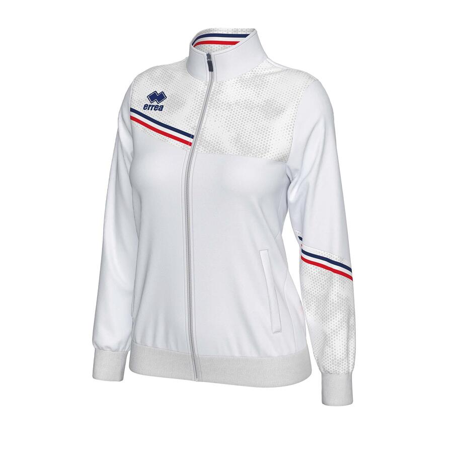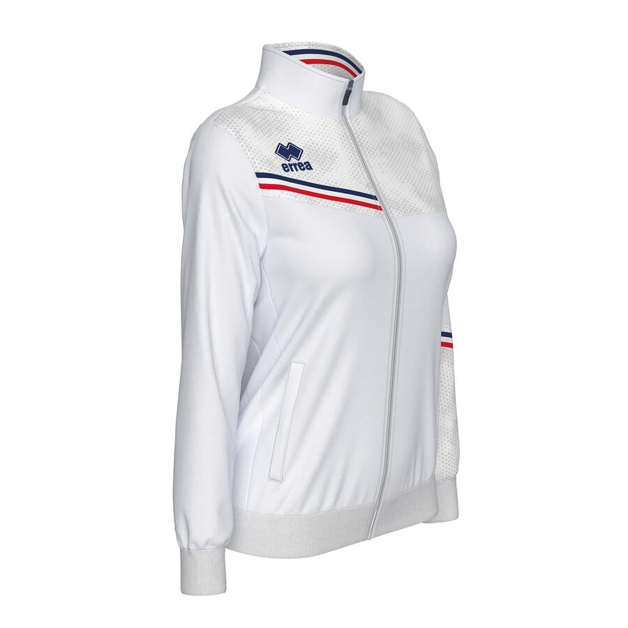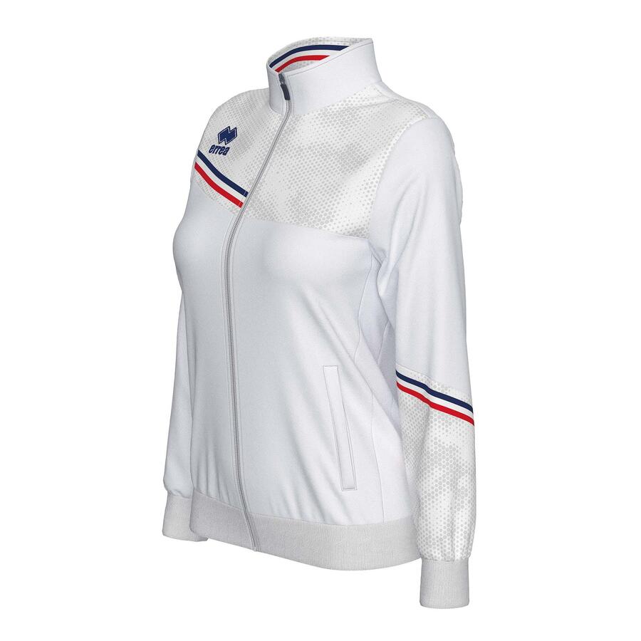 BIA BLU ROS * Состав: 100% полиэстер * Рукава: Длинные рукава * Вырез: Высокий ворот * Посадка: Стандартная * Застежка: Полная молния * Детали: Вставка с переносом, эластичные манжеты и пояс в рубчик, боковые карманы на молнии, переводные ленты * Устойчивость: Сертификация Oeko-Tex Standard 100 * Применение: Идеально подходит для тренировок, представлений или отдыха в межсезонье благодаря дышащей и легкой ткани