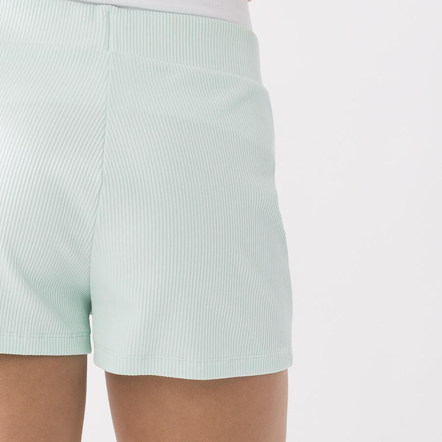 Классические спортивные шорты в этом сезоне переосмыслены с использованием полосатой хлопчатобумажной ткани в рубчик, которая добавляет инновационный штрих к их дизайну.