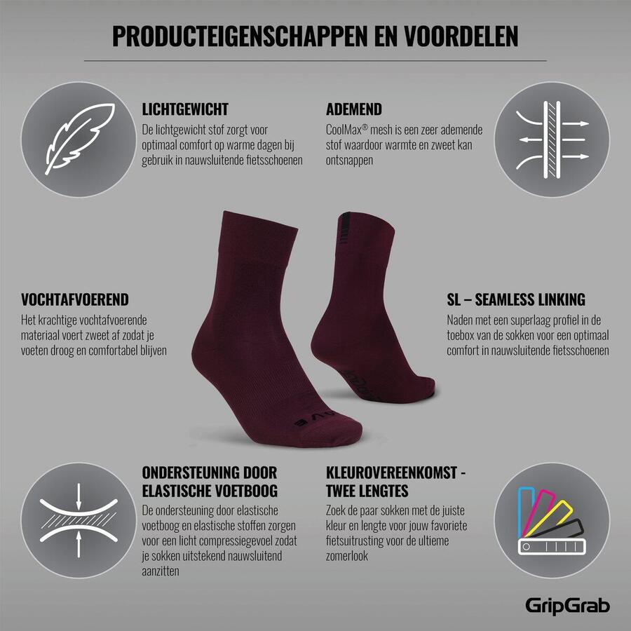 Носки GripGrab Lightweight SL обеспечат комфорт и стиль в приятные летние дни. Они изготовлены из лёгкого и дышащего материала Coolmax, имеют ненавязчивый логотип и доступны во многих цветах, поэтому вы можете идеально подобрать их к своему летнему велосипедному костюму или своему стилю и настроению во время езды.