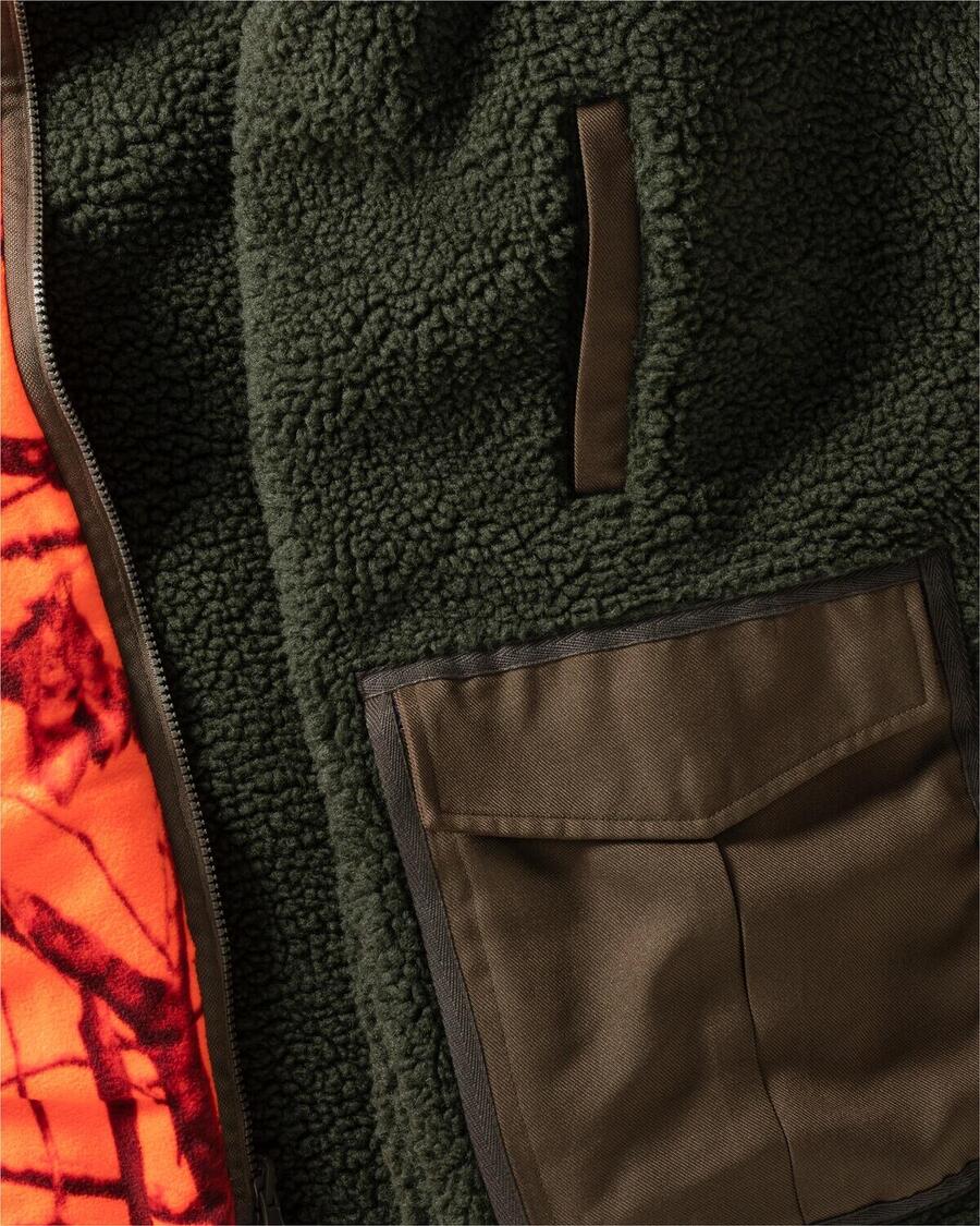 Бесшумная двухсторонняя флисовая куртка от WALD & FORST выполнена из плотного, утепленного флиса и светоотражающего камуфляжного флиса внутри. Водоотталкивающая мембрана защищает от проникновения влаги. Прочная отделка на стеганых плечах, локтях и карманах гарантирует повышенную прочность мягкого флиса. Оливковая сторона куртки имеет два вместительных передних кармана с клапанами и карманами на молнии, два кармана для рук и один нагрудный карман на молнии, а оранжевая сторона — два кармана для рук и два кармана на молнии. Мягкие трикотажные манжеты защищают от неприятных сквозняков. Прочная двухсторонняя молния спереди.