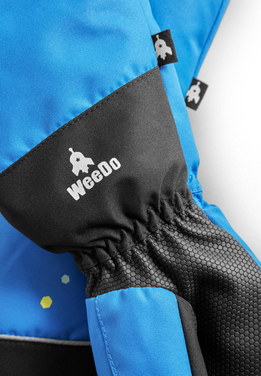 Детские варежки WeeDo тёплые, водонепроницаемые, легко надеваются и удобны в носке. Между внешним материалом и подкладкой находится водонепроницаемая мембрана, которая предотвращает попадание снега и воды внутрь, обеспечивая при этом быстрый отвод влаги. Благодаря этому детские руки остаются сухими и тёплыми. Эластичная резинка с фиксатором шнурка по краю обеспечивает надёжную посадку. Светоотражающие элементы обеспечивают безопасность в темноте. Нескользящая полиуретановая ладонь обеспечивает хороший хват — идеально для катания на лыжах, сноуборде, санках и коньках!