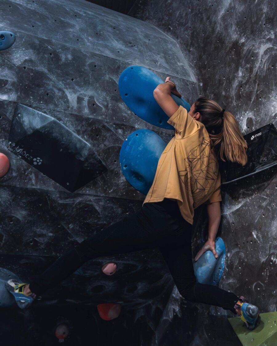 Наша футболка для боулдеринга впечатляет своим ярким принтом на спине, вдохновлённым современными скалодромами. Это придаёт футболке уникальный дизайн, который идеально подходит и для ношения за пределами скалодрома. Плотная ткань приятно приятна на ощупь. Высококачественный материал обеспечивает не только удобную посадку, но и долговечность. Ткань и принт на спине остаются яркими и износостойкими даже после многочисленных стирок. Наша одежда, производимая в Польше, соответствует самым высоким европейским стандартам и является символом не только качества, но и местного производства в лучших этических условиях. Наши транспортные маршруты короткие, что обеспечивает низкий углеродный след. Носите свою страсть не только на скалах, но и в повседневной жизни. Откройте для себя идеальный баланс стиля и функциональности и будьте готовы к новым вершинам — будь то в спортзале или в городе!