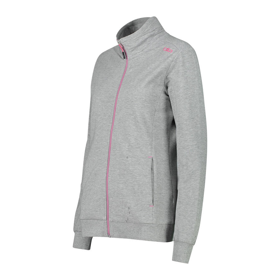 Женская толстовка CMP. Толстовка с молнией по всей длине, мягкая и эластичная, из приятного на ощупь материала, который не сковывает движений. Ребристый внутренний воротник и манжеты, а также два боковых кармана. Идеально подходит для отдыха и после тренировок. Состав: 85% хлопок, 10% вискоза, 5% эластан.