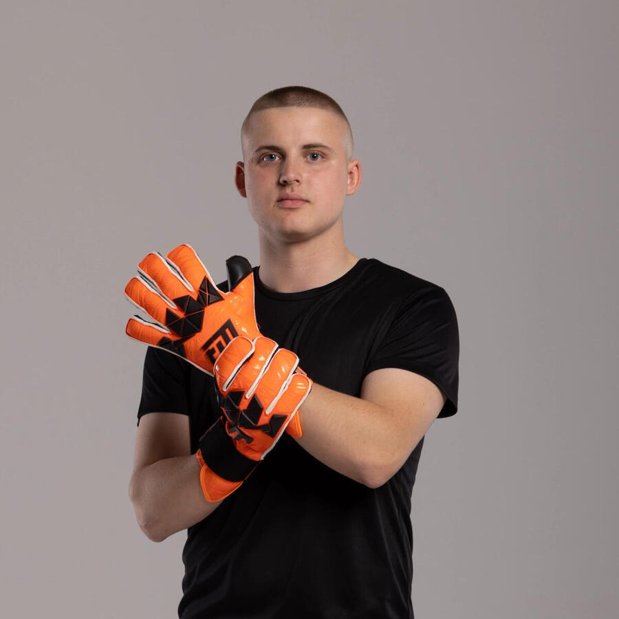 Доминируйте в штрафной площади. Invictus X PRO — перчатки для вратарей, которые не приемлют слова поражение. Немецкие матчевые латексные перчатки Contact PRO толщиной 4 мм, обогащенные составом PRO, обеспечивают непревзойденное сцепление в любых погодных условиях. Дополнительная защитная пленка гарантирует, что перчатки останутся свежими и сохранят сцепление надолго — независимо от интенсивности тренировок или игры. Крой Roll Finger+ обеспечивает максимальный контроль мяча. Закругленные пальцы увеличивают площадь контакта с мячом, а отсутствие швов на двух средних пальцах удваивает прочность перчатки. Ощущайте непревзойденный комфорт и надежность при каждом хвате. Бэкхенд Beta & Latex сочетает в себе максимальный комфорт и исключительную функциональность. Эластичный материал идеально адаптируется к форме вашей руки, обеспечивая свободу движений и отличную вентиляцию. Силиконовые зоны на тыльной стороне ладони поддерживают кулак и дают полный контроль над траекторией мяча. Зона кулака — ваше секретное преимущество в борьбе за чистое поле. Анатомически адаптированная конструкция увеличивает силу и точность ударов кулаком, не ограничивая подвижность пальцев. Динамичный дизайн подчёркивает вашу уверенность и силу. Двойной эластичный ремешок гарантирует фиксацию и защиту запястья. Возможность индивидуальной регулировки застёжки обеспечивает идеальную посадку, а прочный материал — долгий срок службы. С Invictus X PRO вы готовы к любым испытаниям.