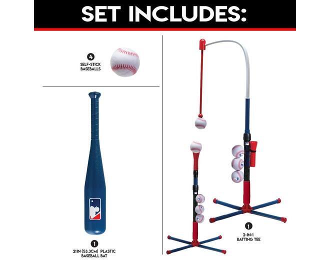 ВСЁ В КОМПЛЕКТЕ: В этот набор входят: ти для отбивания Grow-with-Me, (1) пластиковая бита длиной 21 дюйм и (4) бейсбольных мяча с клейкими накладками, так что у вас есть всё необходимое для игры!
