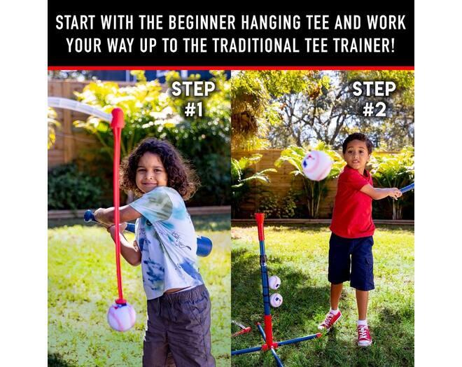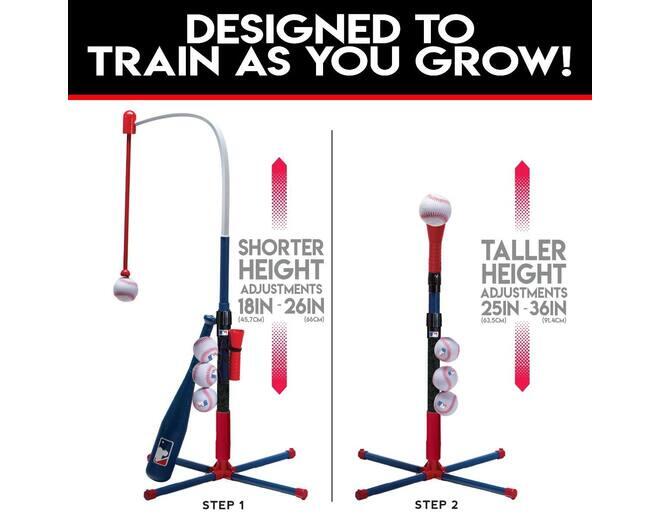 ПОДВЕСНАЯ ПОДСТАВКА: Подвесная подставка для самых юных игроков использует технологию самоклеящейся подставки, чтобы подвешивать мяч на высоте 18–26 дюймов от земли, позволяя юным отбивающим практиковать координацию рук и глаз!