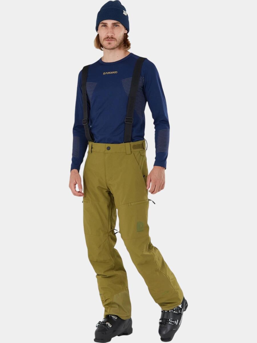 Снежная юбка, которую можно присоединить к горнолыжной куртке, предотвращает попадание снега под одежду даже при сильных падениях. В передних карманах на молнии удобно хранить ценные вещи. Благодаря вентиляционным отверстиям на молнии вы можете легко регулировать теплоотдачу. Съёмные регулируемые подтяжки и регулируемый пояс позволяют подогнать брюки под ваши индивидуальные потребности. Воздухопроницаемость: 10 000 г/м²/24 ч.
