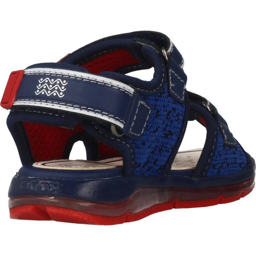 Сандалии Todo Boy, модель B, от Geox, синего цвета, текстильные. Снаружи – искусственная кожа. Конструкция: слип-он. Сделано во Вьетнаме.