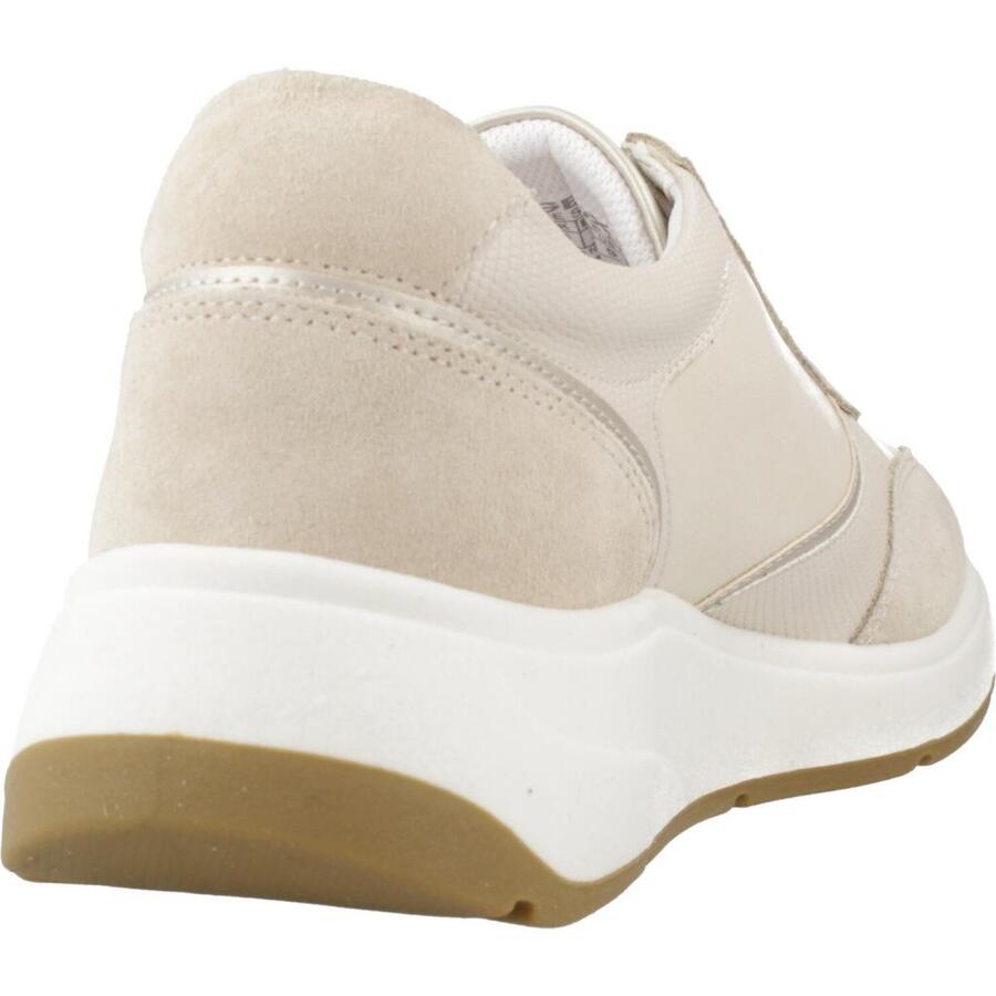 Модель D Cristael от Geox бежевого цвета с текстильной отделкой. Внешний материал: кожа. Конструкция: слип-он. Сделано в Тунисе.