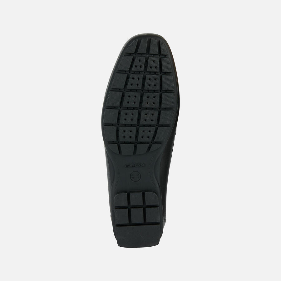 Модель U Moner W 2fit от Geox, чёрного цвета, из натуральной кожи. Материал верха: кожа. Конструкция: слип-он. Сделано в Индии.