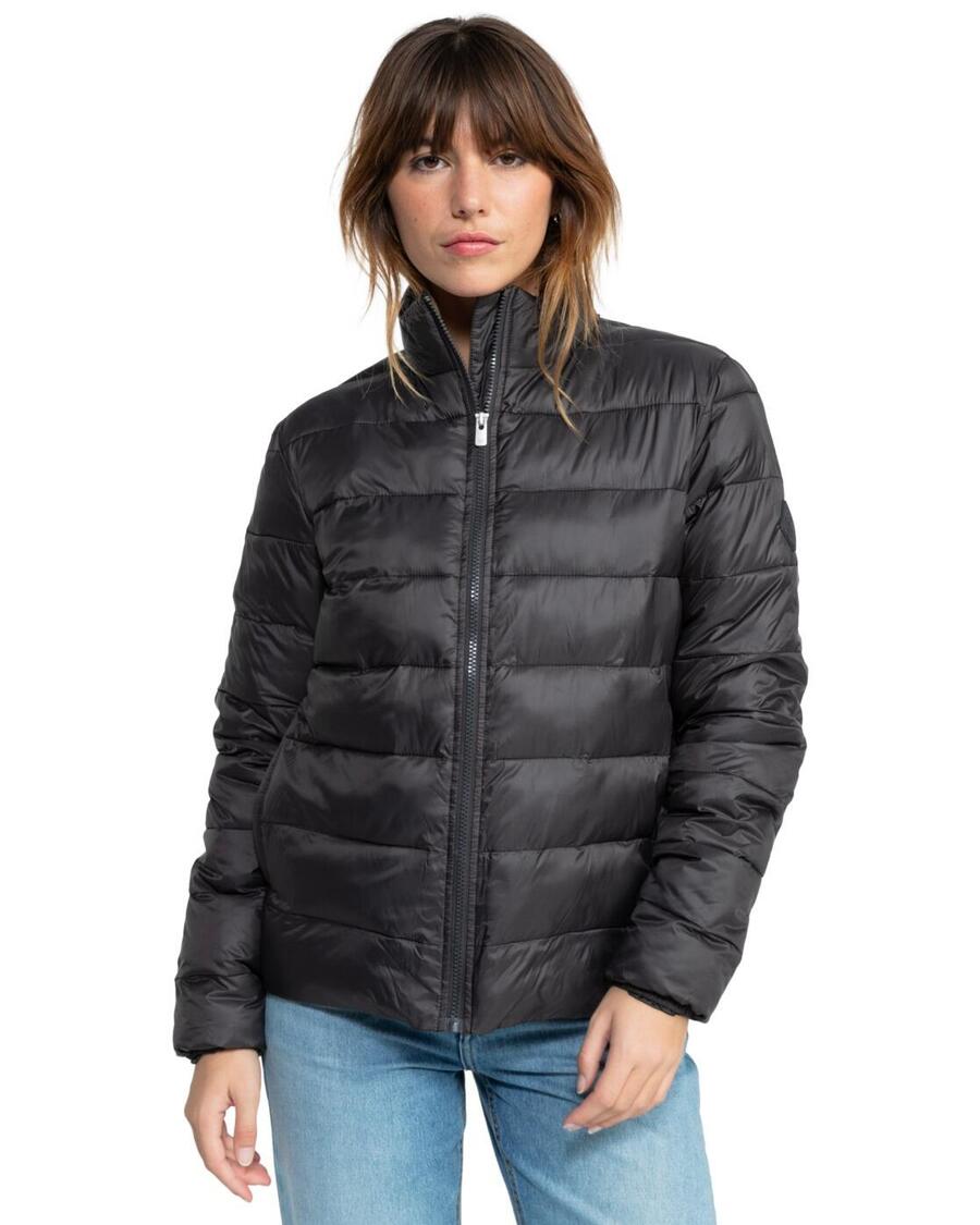 Женская утеплённая куртка | Характеристики: | Материал: лёгкая нейлоновая ткань (100% переработанный) | Крой: свободный | Воротник: стойка | Рукава: длинные | Капюшон: без капюшона | Состав: [Основной материал]: 100% переработанный нейлон | Артикул: ERJJK03617-kta0