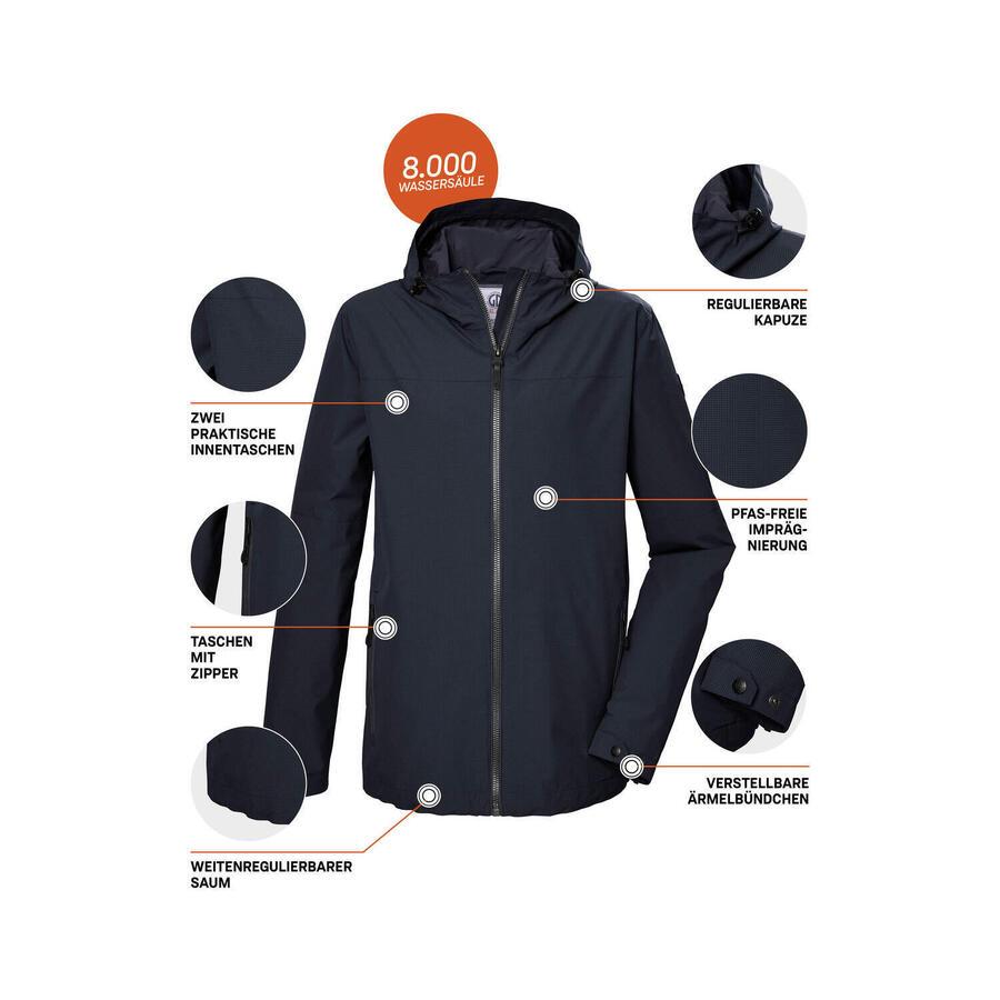 Функциональная мужская куртка от GIGA DX с регулируемым капюшоном впечатляет своим городским стилем, но также подходит для прогулок на природе. Водоотталкивающая и ветронепроницаемая куртка с защитой 8000 мм водяного столба. Ширина подола и манжет регулируется. Передняя молния оснащена практичной защитой подбородка. Два боковых кармана застегиваются на молнии, а два внутренних кармана предлагают дополнительное место для хранения. Killtec особенно стремится сделать свои коллекции более экологичными и ориентированными на будущее. Поэтому Killtec уделяет всё больше внимания более ответственным производственным процессам. Эта куртка обработана пропиткой без ПФАС и частично изготовлена из переработанных материалов.