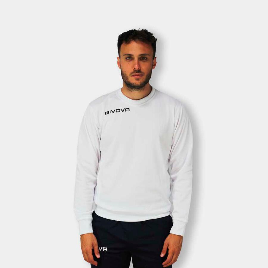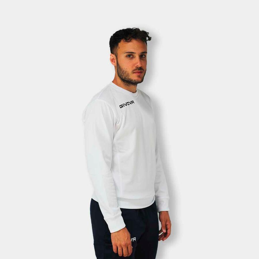 Толстовка Givova белая, с круглым вырезом, без капюшона и карманов. Простой дизайн унисекс на все времена года. Размер 4XS (Z200: размер ткани). Новая коллекция все вещи.