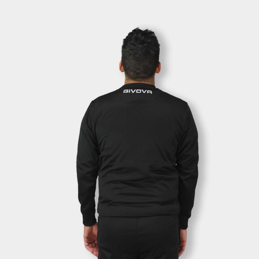Толстовка Givova чёрного цвета, с круглым вырезом, без капюшона и карманов. Унисекс, на все времена года, идеально подходит для мини-футбола и тренировок.