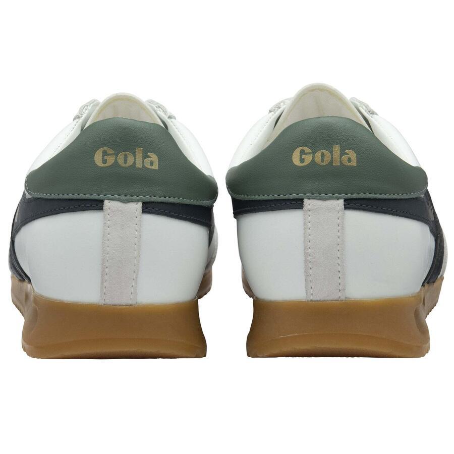 Кроссовки в стиле Терраса прочно вошли в моду, а мужские кроссовки Torpedo Leather созданы на основе аутентичной модели Gola 1985 года. Короткий носок и удлинённая шнуровка придают этим мужским кроссовкам новую динамику, напоминающую об исторических кроссовках, которые использовались как на поле, так и на беговой дорожке. Резиновая подошва с лёгким клином дополняется верхом из чистой белой кожи и пяткой цвета шалфея, украшенной тёмно-синим логотипом Gola по бокам. Кроссовки Gola Retro. Мужские кожаные кроссовки. Обувь на шнуровке. Оригинальный дизайн 80-х. Резиновые кроссовки.