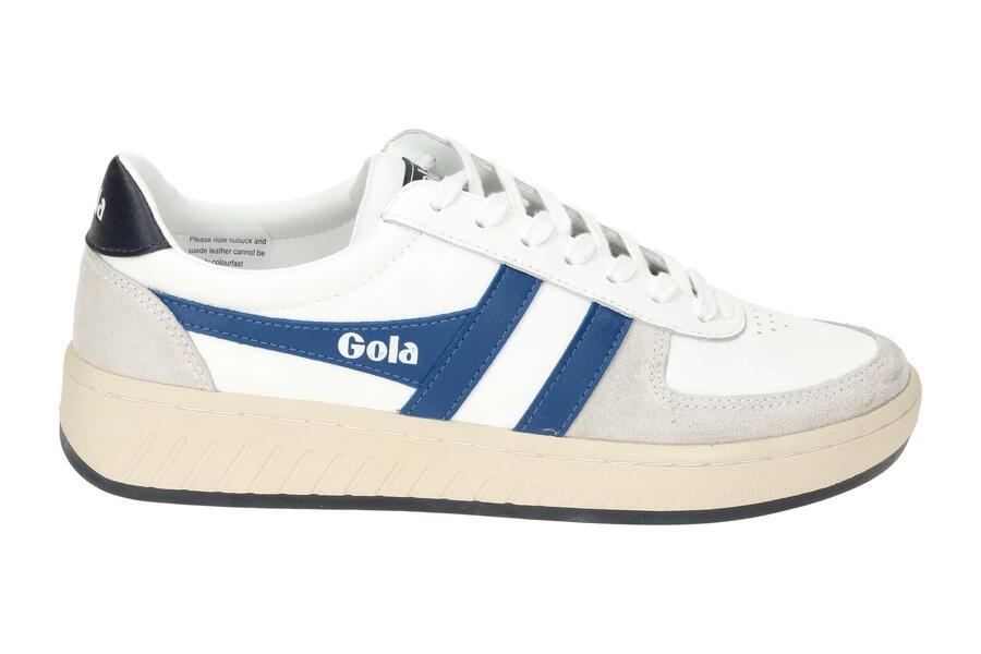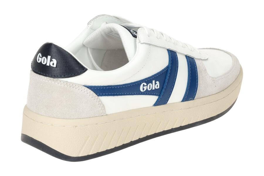 Мужская модель Gola GRANDSLAM CLASSIC впечатляет стильным дизайном в белом, светло-сером и синем цветах. Модель выполнена из гладкой смеси кожи и замши, а также имеет удобную текстильную подкладку.
