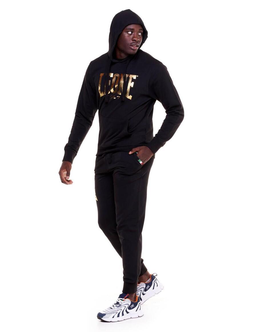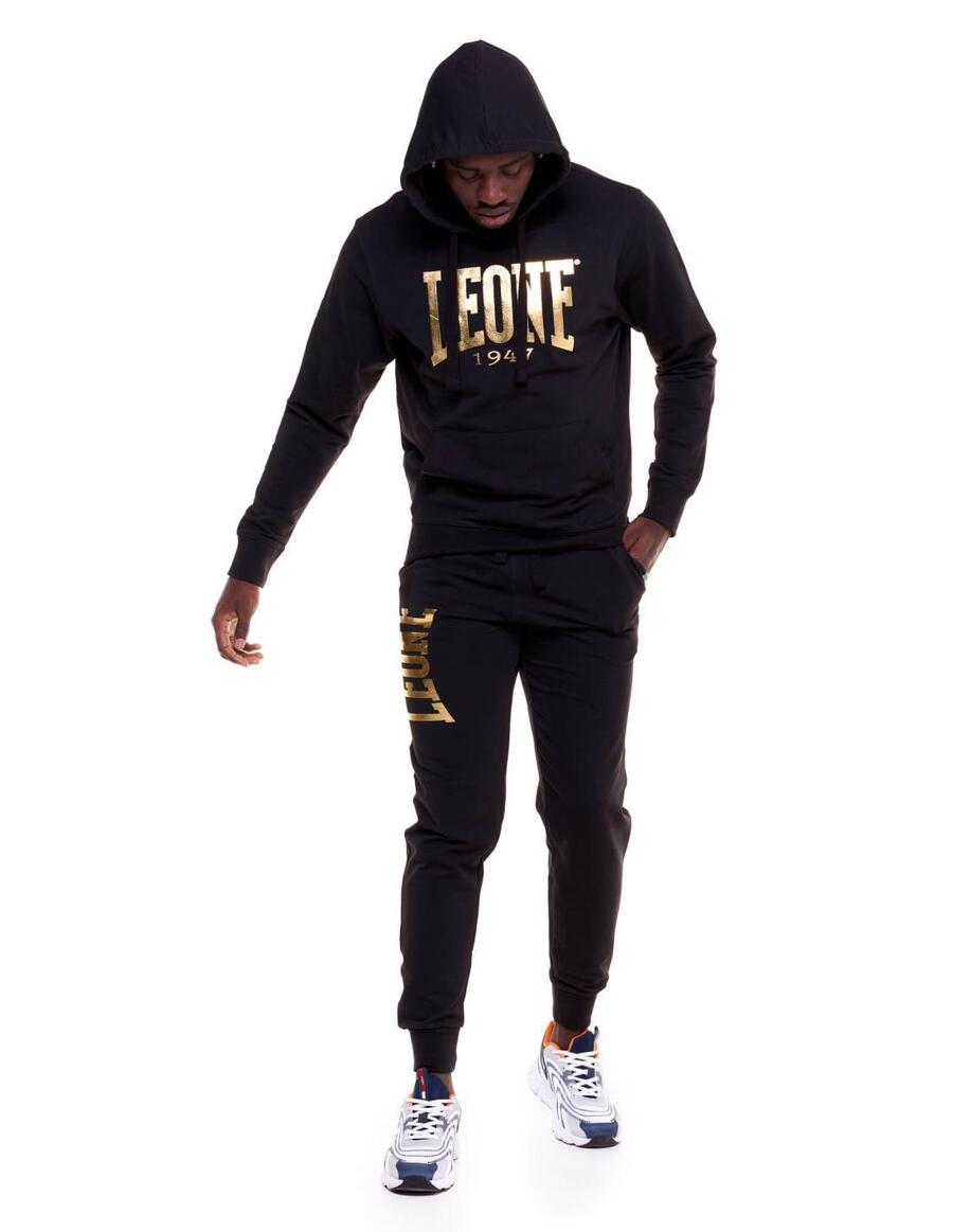 Мужская толстовка с капюшоном из коллекции Leone 1947 Apparel Gold. Капюшон с регулируемой кулиской. Низ и манжеты из эластичного флиса в рубчик. Большой золотистый логотип Leone 1947 на груди. Тканые этикетки пришиты с внутренней стороны изделия.