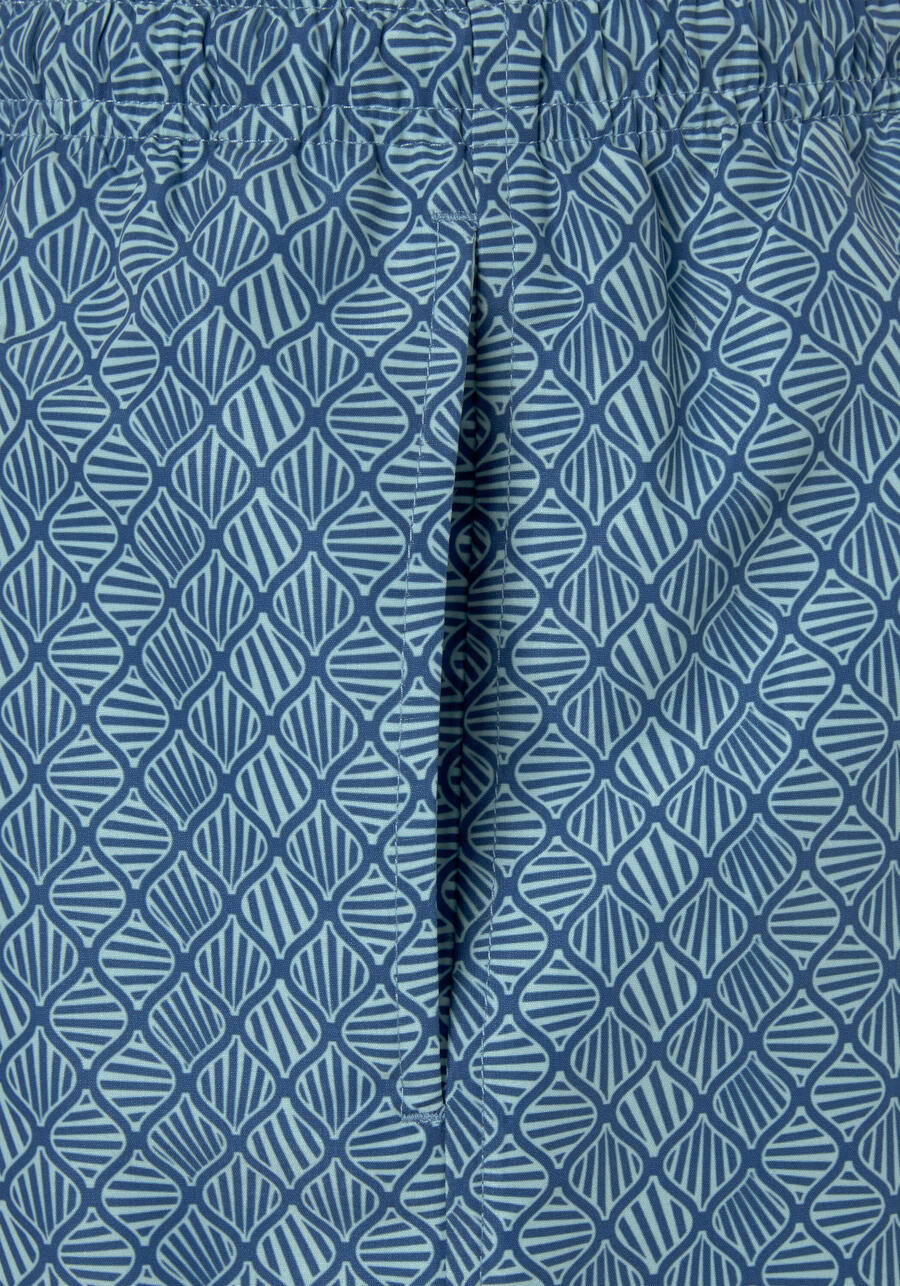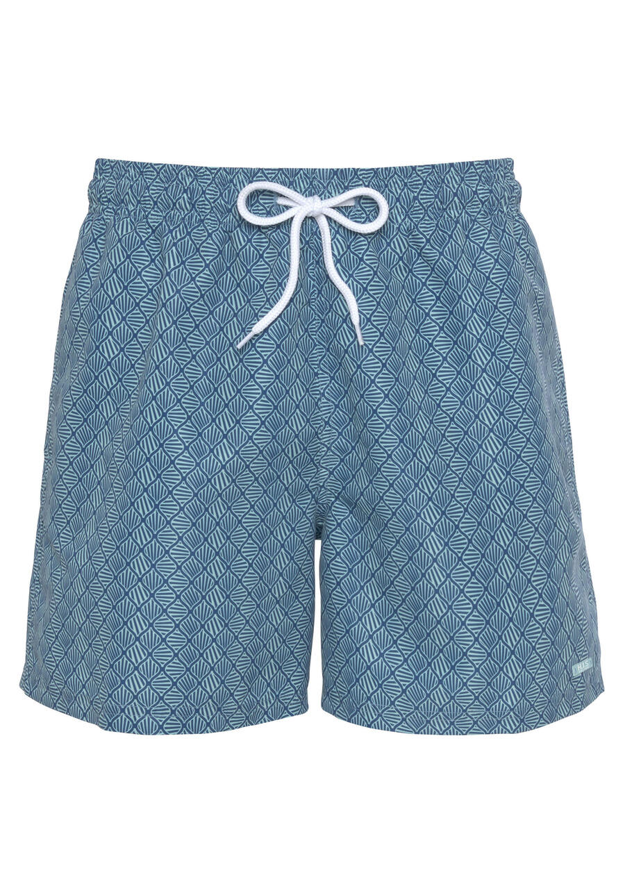 Плавающие шорты HIS с графическим принтом. Эластичный пояс на шнурке. Задний карман на липучке. Сетчатые трусы с внутренним карманом. Прямой крой. Мягкая микрофибра с добавлением переработанного полиэстера. MAY-177