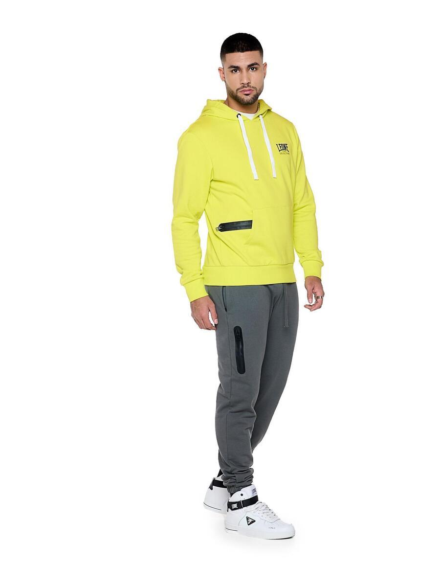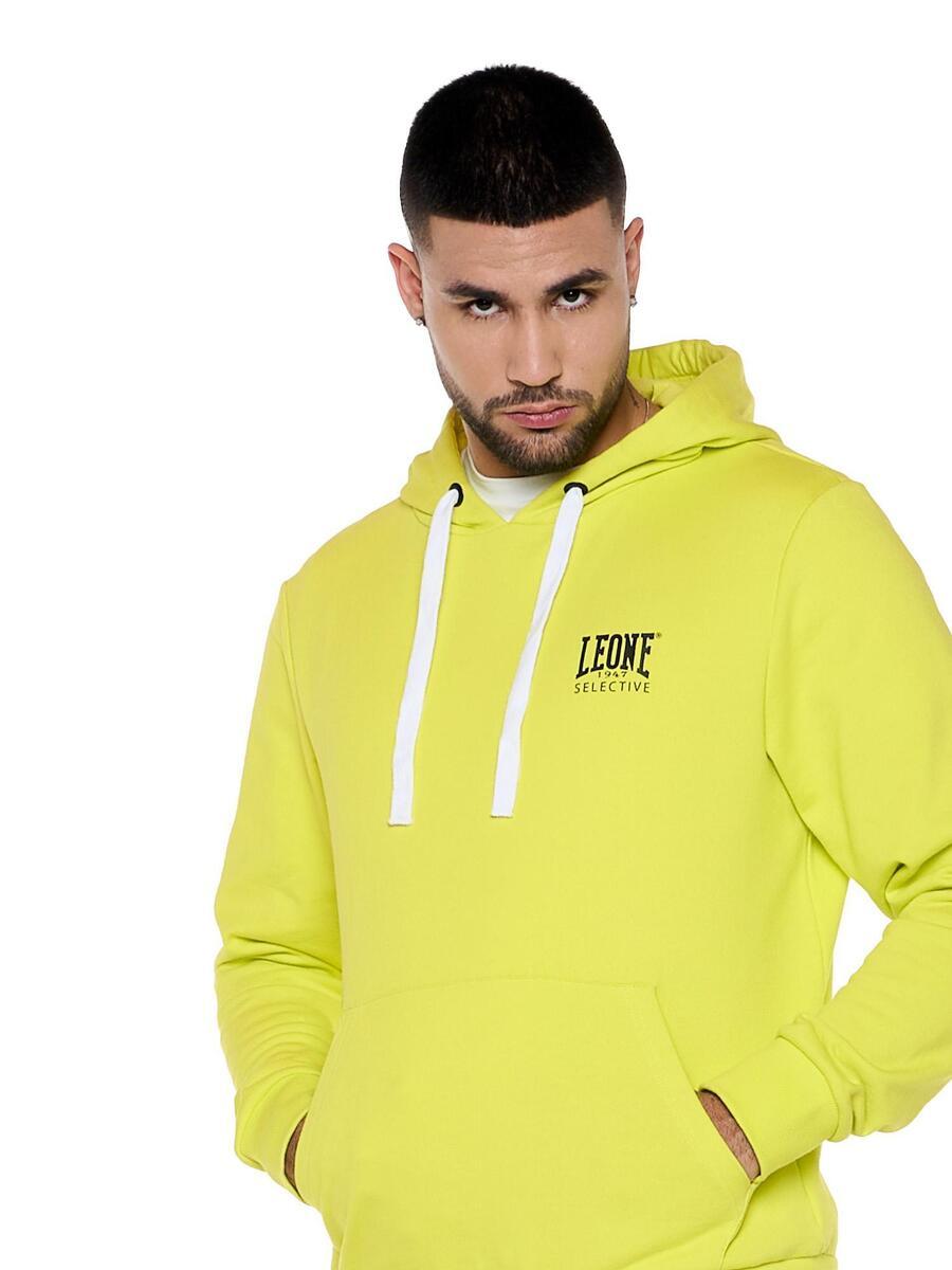 Толстовка с капюшоном на молнии из эластичного хлопка. Край левого кармана запаян термосваркой для невидимости. Нашивка с логотипом Leone 1947 на конце капюшона. Эластичные манжеты и подол на резинке.