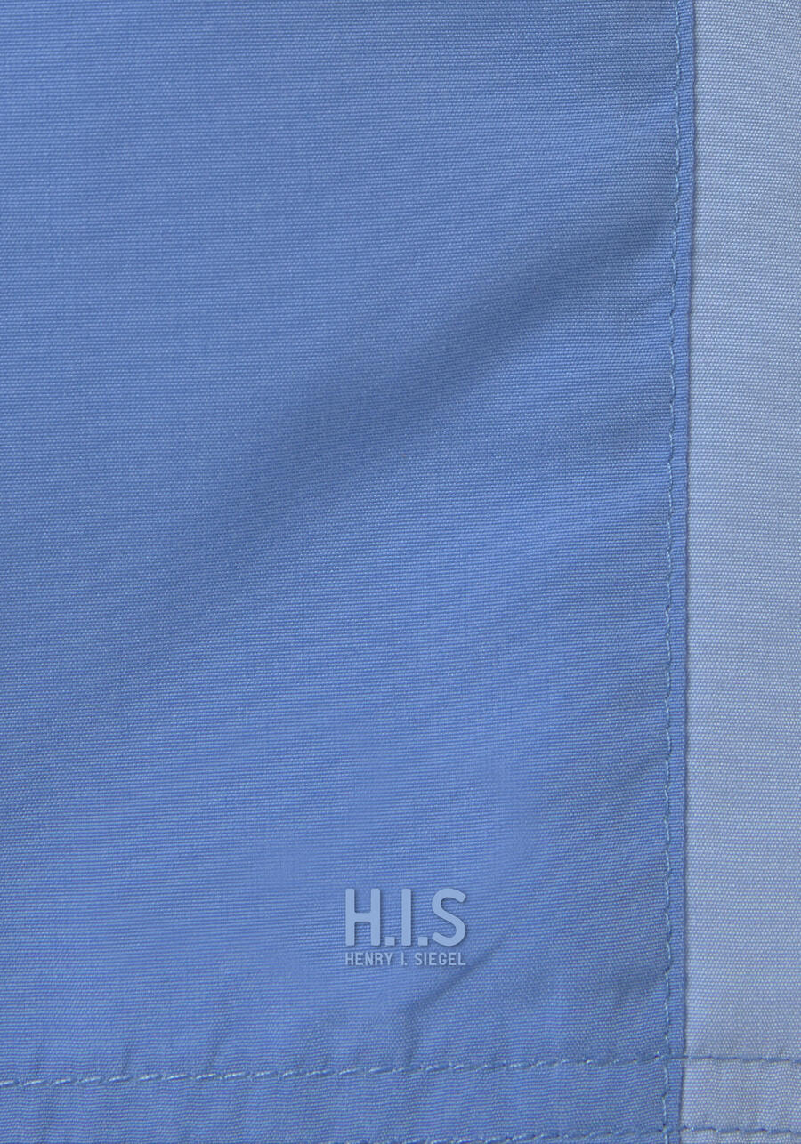 Плавающие шорты HIS с контрастными полосками. Эластичный пояс с завязкой и видимым шнурком. Задний карман на липучке. Сетчатые трусы с внутренним карманом. Прямой крой. Мягкая микрофибра с добавлением переработанного полиэстера. MAY-180