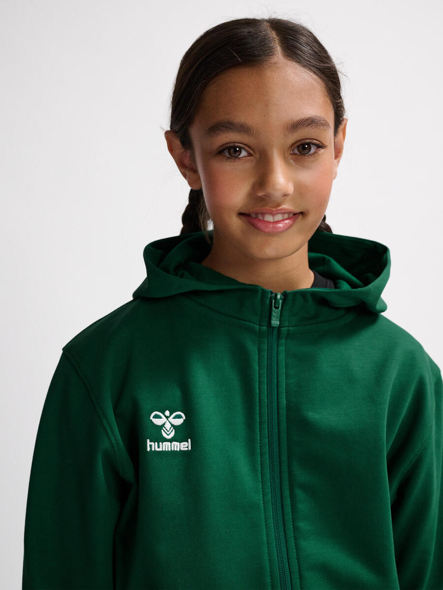 Детская толстовка с капюшоном Hmlgo 2.0 Zip Hoodie Kids — это мягкая и комфортная толстовка с застёжкой-молнией спереди, которая обеспечит вашему ребёнку комфорт в прохладные дни. Она изготовлена из трикотажного материала на основе органического хлопка и переработанного полиэстера. Эта толстовка на молнии имеет регулируемый капюшон на шнурке, боковые карманы и вышитый логотип на груди.