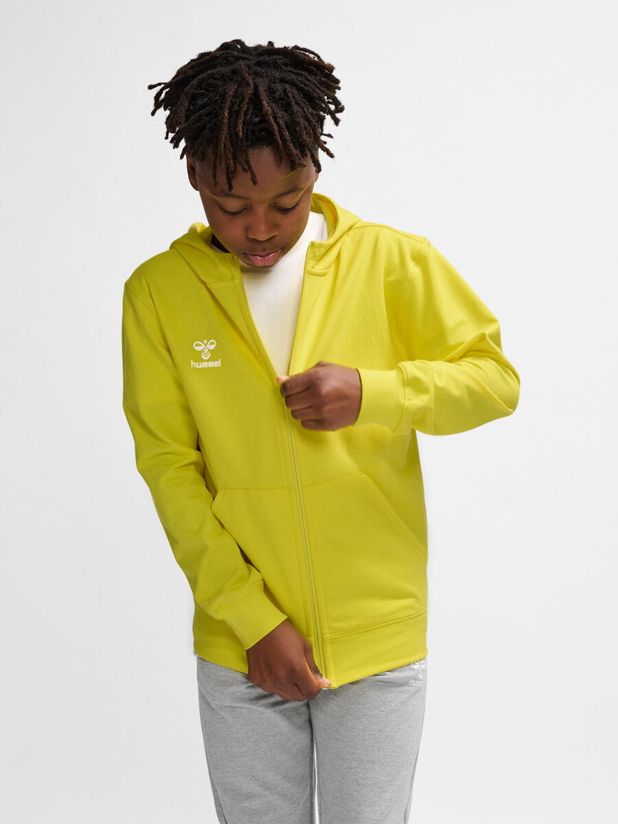Детская толстовка с капюшоном Hmlgo 2.0 Zip Hoodie Kids — это мягкая и комфортная толстовка с застёжкой-молнией спереди, которая обеспечит вашему ребёнку комфорт в прохладные дни. Она изготовлена из трикотажного материала на основе органического хлопка и переработанного полиэстера. Эта толстовка на молнии имеет регулируемый капюшон на шнурке, боковые карманы и вышитый логотип на груди.