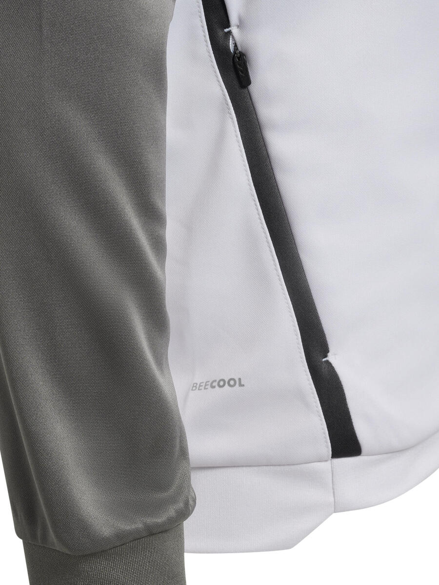 Куртка Hmllead 2.0 Track Zip с технологией Beecool обеспечивает отличную воздухопроницаемость и быстрое высыхание. Куртка имеет классический крой, длинную молнию спереди, карман на молнии для надежного хранения вещей и ребристые манжеты для плотного прилегания. Дополняют образ шевроны Hummel на плечах и логотип Hummel на груди.