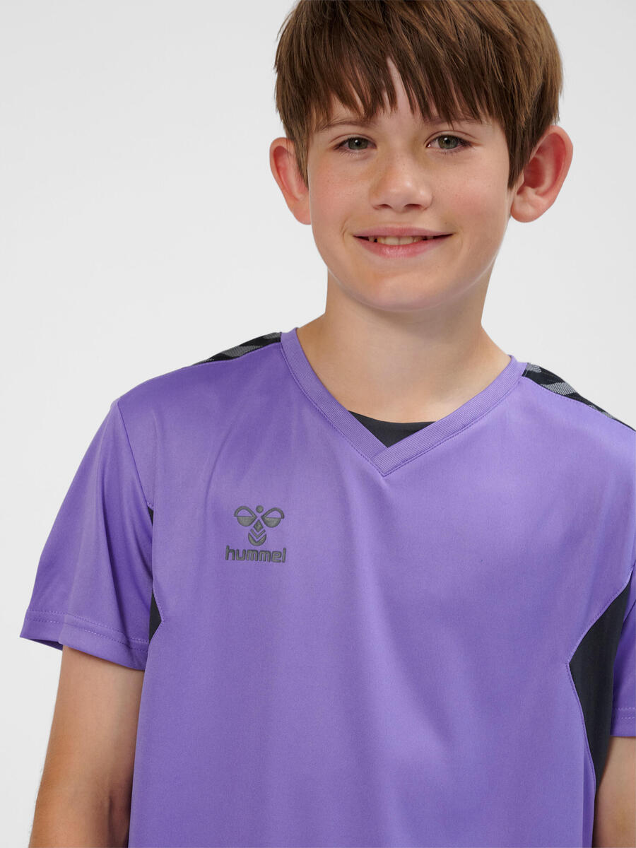 Простой дизайн, но множество преимуществ: вам понравится влагорегулирующая обработка Beecool, характерная для ткани интерлок, изготовленной из 100% переработанного полиэстера. Детская майка Hmlauthentic Pl Jersey S/S Kids эластична и сохраняет форму даже после многочисленных стирок. Эта модель украшена фирменной шевронной тесьмой на плечах и напечатанным логотипом на груди.