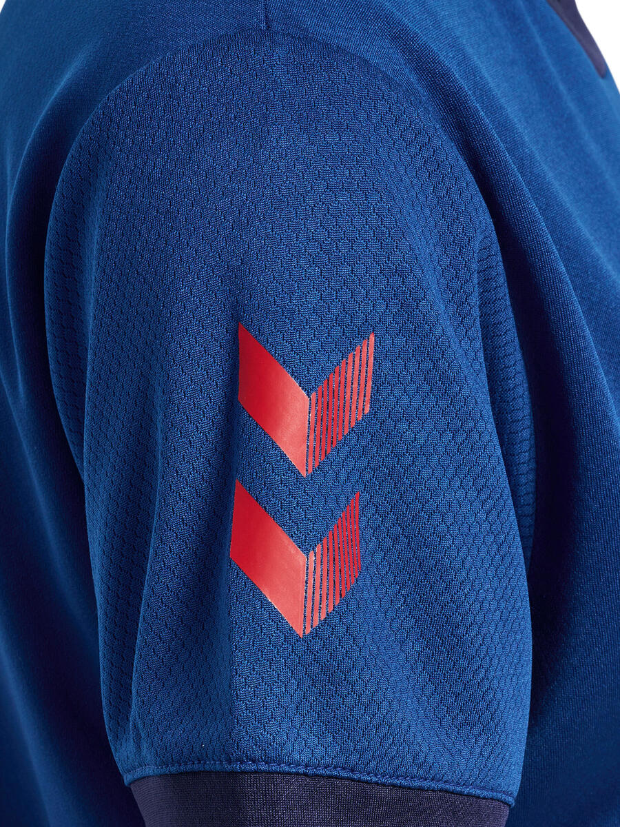 Женская футболка Hmlq4 Poly Jersey S/S станет вашим идеальным партнёром для тренировок в этом сезоне. Сетчатая конструкция обеспечивает отличную воздухопроницаемость, позволяя вам показывать наилучшие результаты. Классический дизайн Hummel со стильным контрастным круглым вырезом и манжетами, а также рукавами из перевёрнутой ткани с нашими фирменными шевронами на правом рукаве. Контрастный принт с логотипом на груди завершает образ.