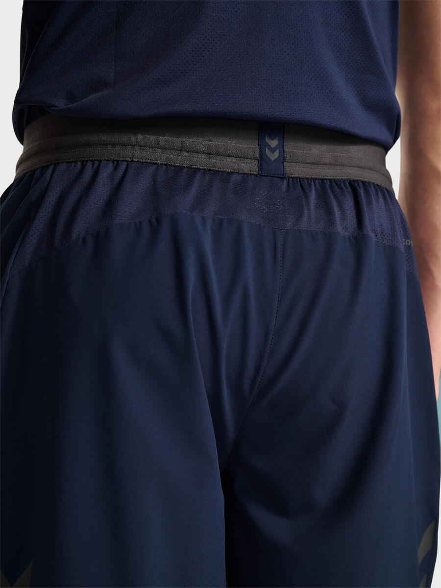 Тренировочные шорты Hmlpro изготовлены из лёгкого тканого материала с эластичными вставками для большей гибкости. Шорты оснащены технологией Beecool для воздухопроницаемости и быстрого высыхания, а эластичный пояс со шнурком обеспечивает надёжную и комфортную посадку. Логотип Hummel на одной штанине завершает образ.