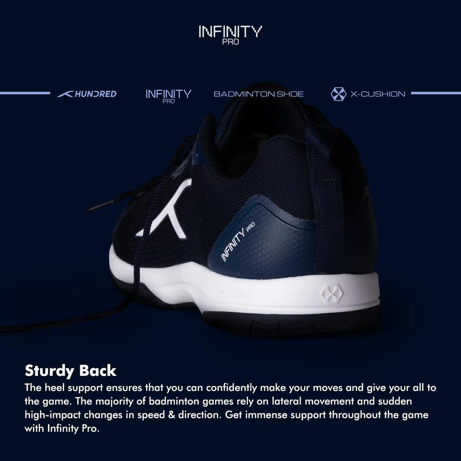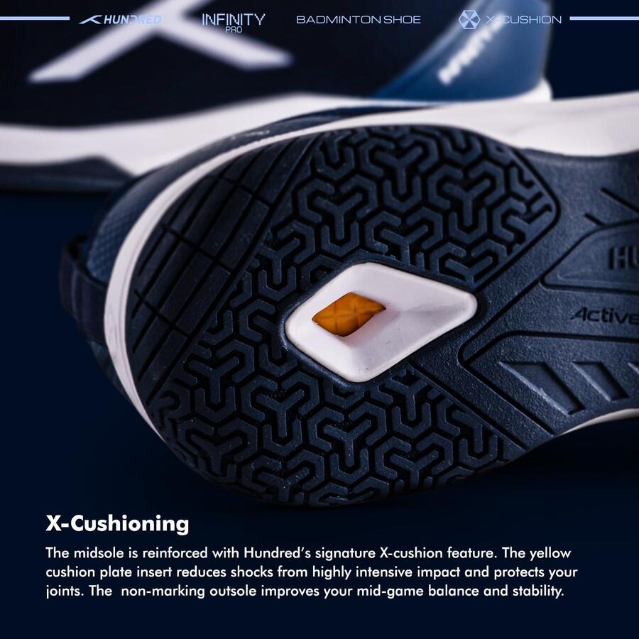 Товар: Мужские профессиональные бадминтонные кроссовки HUNDRED Infinity Pro Non-MarkingЦвет и размер: Темно-синий/белый, EU 44 / UK 10 / US 11Материал: Полиэстер / сеткаПодходит для: Тенниса в помещении, сквоша, настольного тенниса, баскетбола и паделя