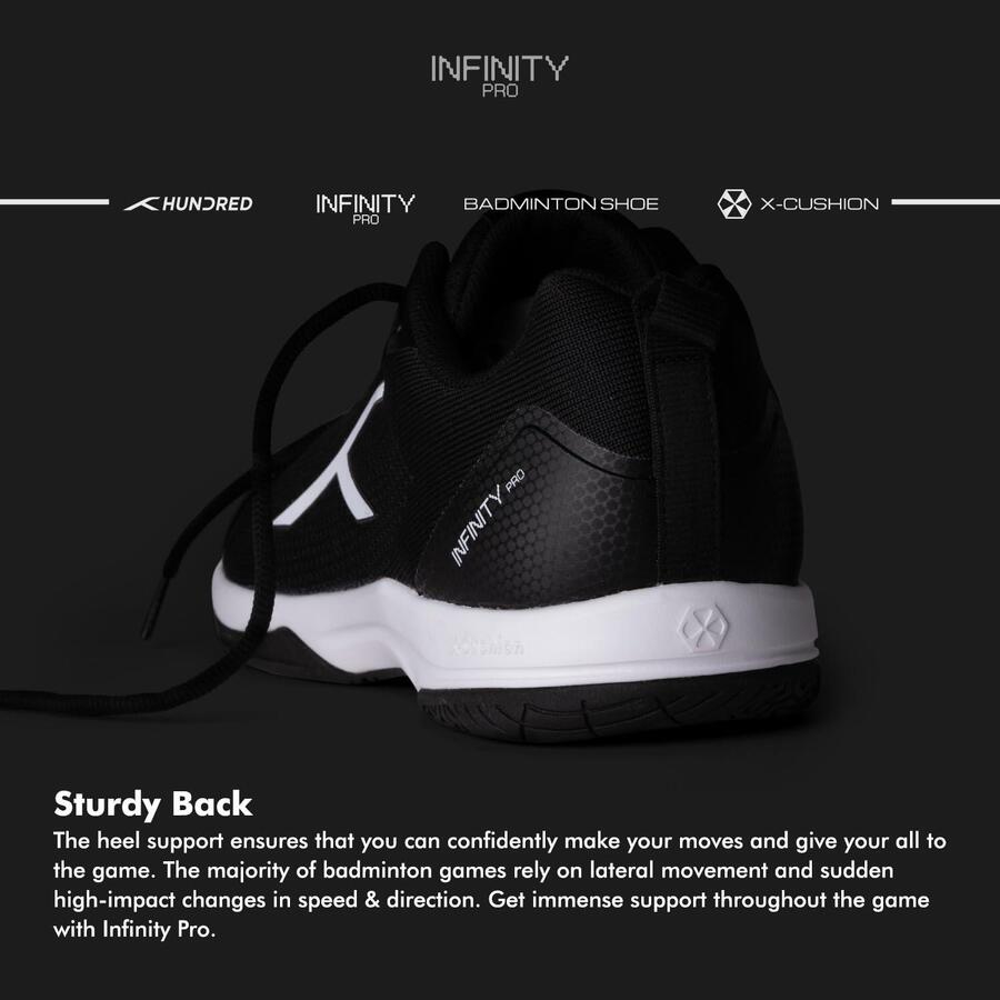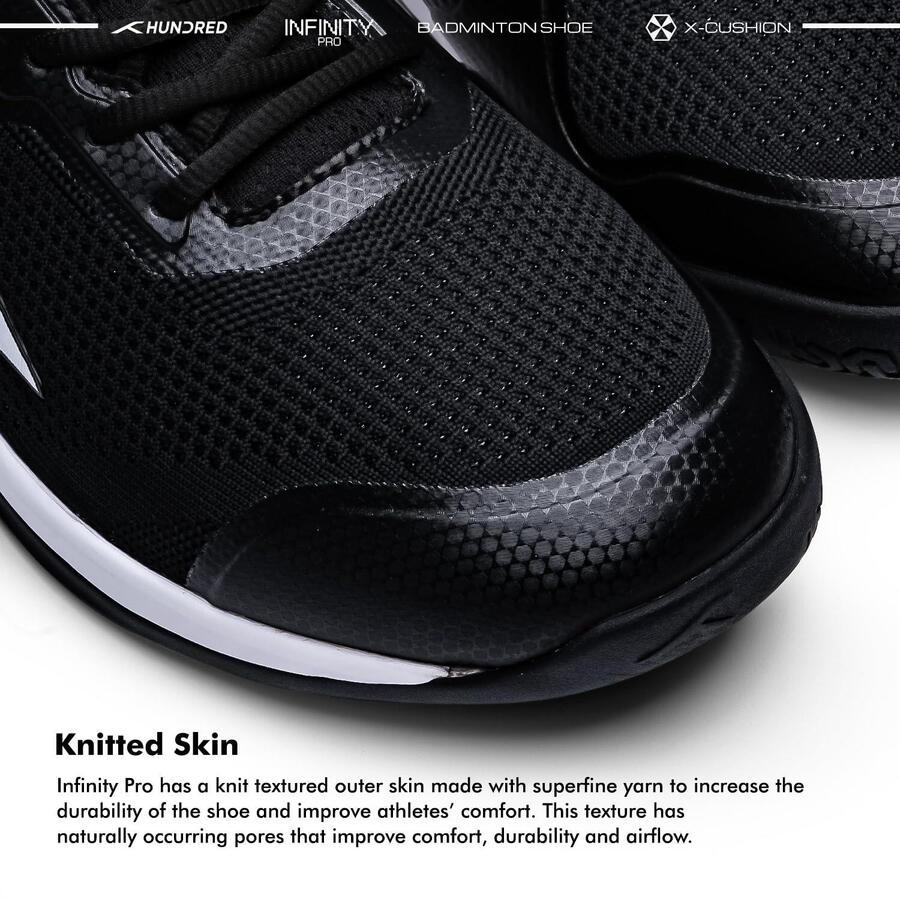 Продукт: Мужские профессиональные кроссовки для бадминтона HUNDRED Infinity Pro Non-MarkingЦвет и размер: черный/белый, EU 45 / UK 11 / US 12Материал: полиэстер / сеткаПодходит для: тенниса в помещении, сквоша, настольного тенниса, баскетбола и паделя