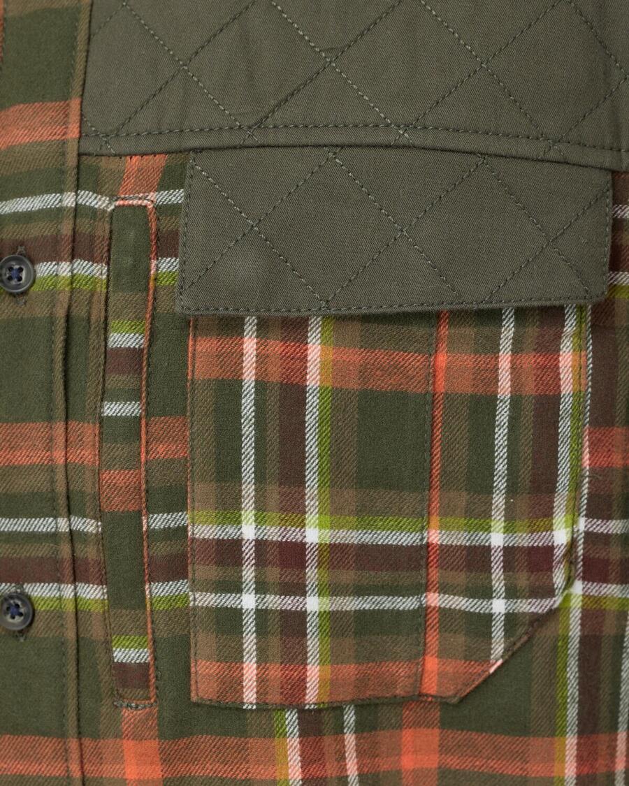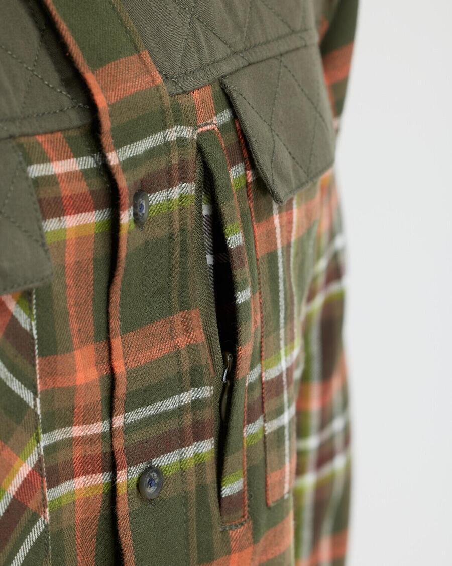 Особенности рубашки включают в себя два нагрудных кармана с клапанами на кнопках и дополнительный вертикальный нагрудный карман на молнии с левой стороны, которые предлагают достаточно места для хранения небольшого охотничьего снаряжения. Клетчатая рубашка сочетает в себе функциональность и эстетическую привлекательность, без которой не должен быть ни один охотничий наряд.