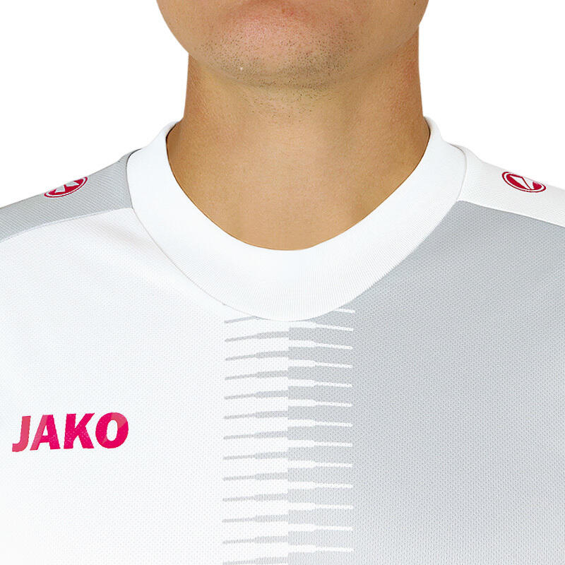 Это стиль для вас как вратаря следующего поколения. Вратарская майка COMPETITION 2.0 стилистически похожа на одноименную майку для полевых игроков. Это позволяет вам идеально представлять стиль вашей команды. Один из трех вариантов цвета — неоново-зеленый/синий JAKO, белый/розовый и лимонно-темно-синий — гарантированно сделает вас безошибочным среди ворот. Два тональных цвета характеризуют внешний вид верха, сливаясь с линейным элементом дизайна в центре. Круглый вырез, ребристый воротник с V-образным вырезом — современный элемент дизайна этой экипировки. Вставки по бокам, надпись JAKO и точки JAKO на плечах выполнены в гармоничных контрастных цветах. Функция JAKO KEEP DRY помогает вам, как вратарю, полностью раскрыть свой потенциал производительности. Влага с вашей кожи переносится через функциональный материал на поверхность ткани, где она может испаряться в течение очень короткого времени. Таким образом, вы сохраняете комфортное ощущение тела и можете полностью сосредоточиться на следующем параде. Вентиляционные отверстия в области подмышек и сетчатые вставки по бокам дополнительно поддерживают вентиляцию. Крой футболки разработан таким образом, чтобы лишний текстильный материал не стеснял движений. Кроме того, манжеты с резинкой облегают запястья, словно вторая кожа, и гарантируют идеальную посадку. Вы можете пролететь через штрафную площадку со всей силы, а затем приземлиться на локти и контролировать мяч. Мягкие вставки на локтях защищают от жесткого приземления. Футболка доступна в детских размерах 116–164 и мужских и женских размерах S–XXL. Материал: 100% полиэстер.