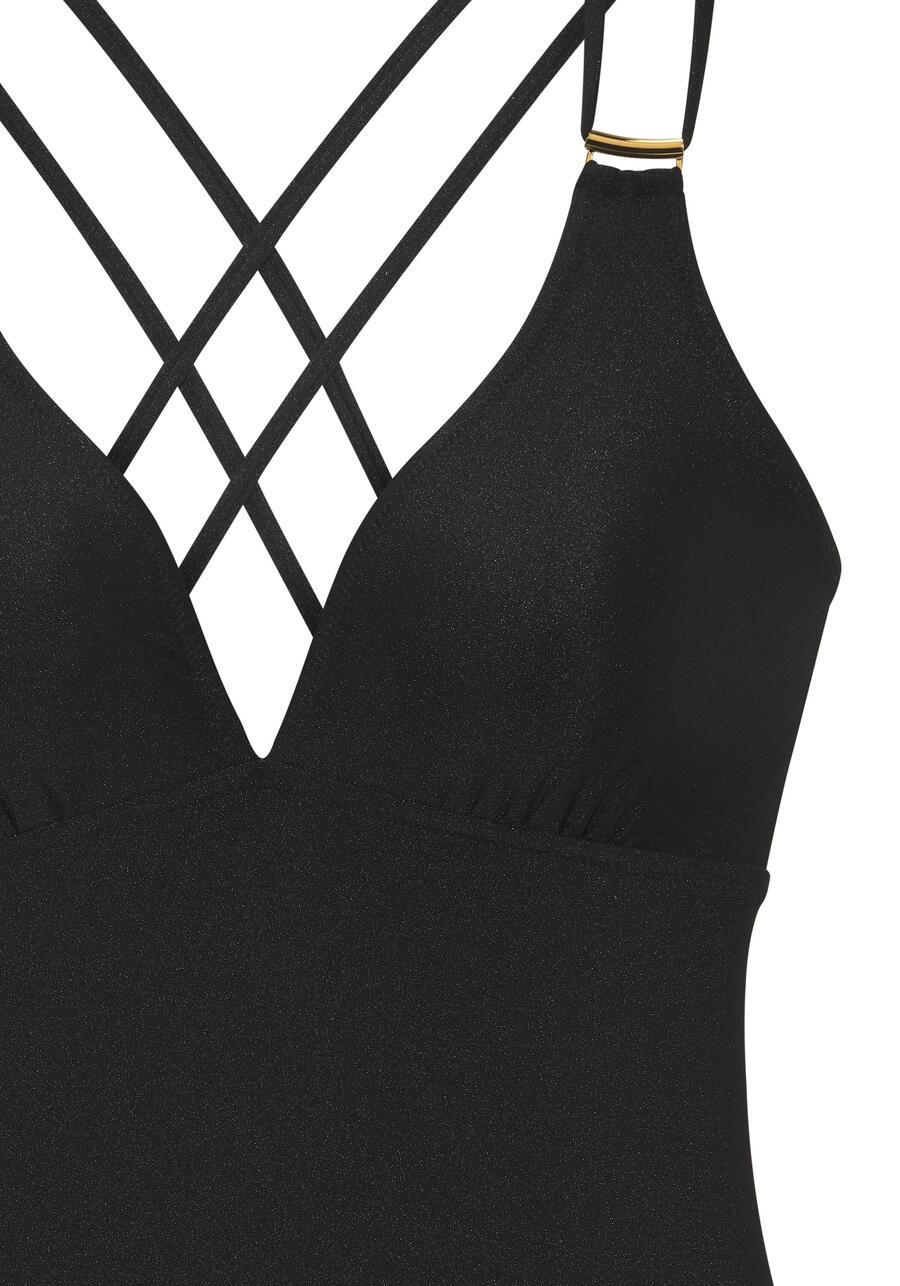 Купальник Jette, созданный дизайнером Джетте Юп, с элегантными золотистыми украшениями. Чашечки съёмные. Регулируемые перекрещивающиеся бретели сзади. Классический крой.