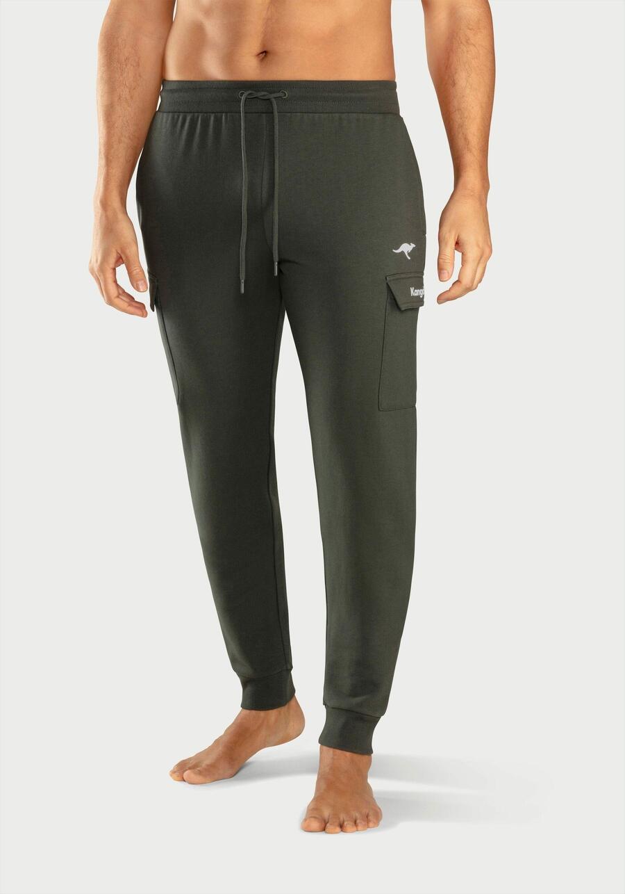 Удобные спортивные брюки от Kangaroos. С накладными карманами. Ребристые манжеты и широкий пояс на ребристой резинке со шнурком. Боковые карманы. Небольшой логотип на штанине. Мягкий материал. JH-22LH