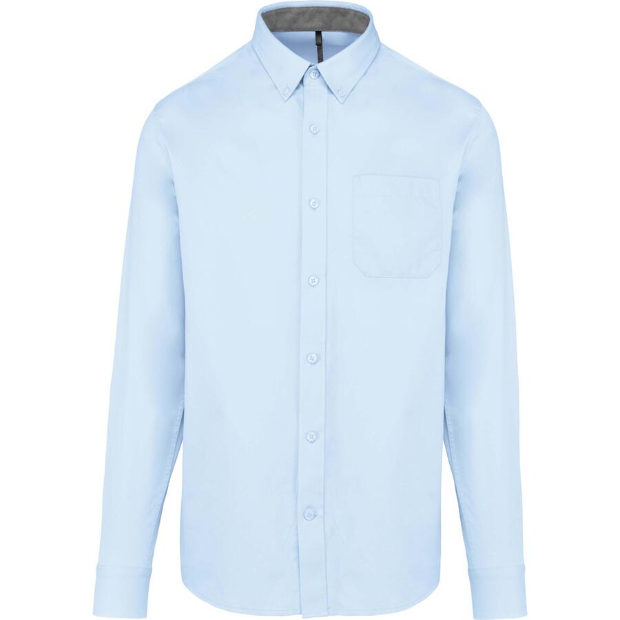 100% хлопок. Ткань саржа с оттенком персиковой кожи. Отложной воротник на пуговицах. Пуговицы в тон. Нагрудный карман сбоку в форме сердца. Внутренняя часть воротника и манжет контрастного серебристого цвета Oxford. Сзади две складки для большей свободы движений и подкладка. Отделка обметочными швами. Регулируемая манжета с застежкой на пуговицы. Кнопка-напоминание.