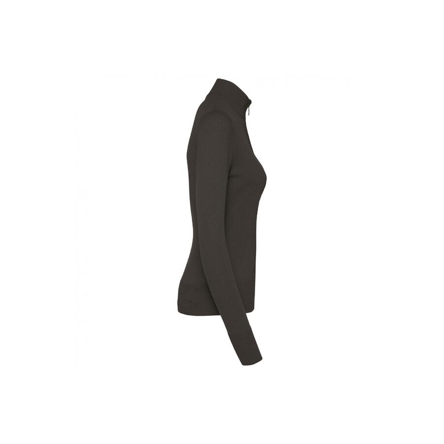 50% хлопок / 50% акрил (калибр 12). Приталенный крой. Двухслойный воротник-труба и застёжка на металлическую молнию дымчатого цвета. Аккуратная резинка на горловине. Сертифицировано по стандарту STANDARD 100 OEKO-TEX № CQ 1007/7, IFTH.