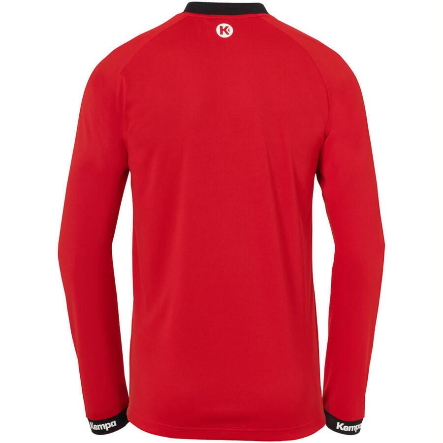 Мужская рубашка Kempa Wave 26 с длинным рукавом. Круглый вырез контрастного цвета. Волна с треугольными элементами. Эластичные принты Kempa и K-Label. Технологичный крой с рукавами реглан. Манжеты с надписью Kempa контрастного цвета. Технология 2face dry. Материал: 100% полиэстер.