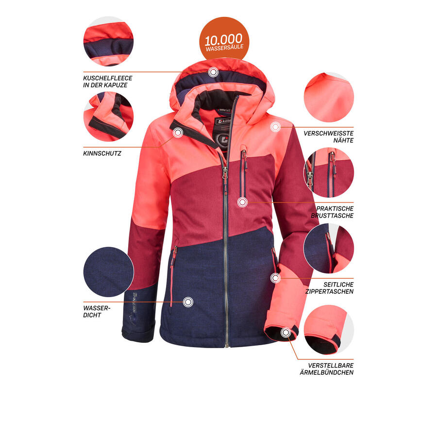 Детская зимняя куртка с капюшоном от killtec станет вашим надежным спутником в холодное время года. Она впечатляет своим модным дизайном с цветовыми блоками, актуальным сочетанием цветов и превосходными характеристиками. Благодаря проклеенным швам и полиуретановому ламинату с водонепроницаемостью 10 000 мм водяного столба куртка на 100% водонепроницаема и ветрозащитна. Мягкая флисовая подкладка обеспечивает уютное тепло. Тепло. Манжеты регулируются с помощью застежек-липучек. Передняя молния оснащена защитой подбородка для предотвращения защемления. Два боковых кармана и нагрудный карман застегиваются на молнии, чтобы предотвратить потерю.